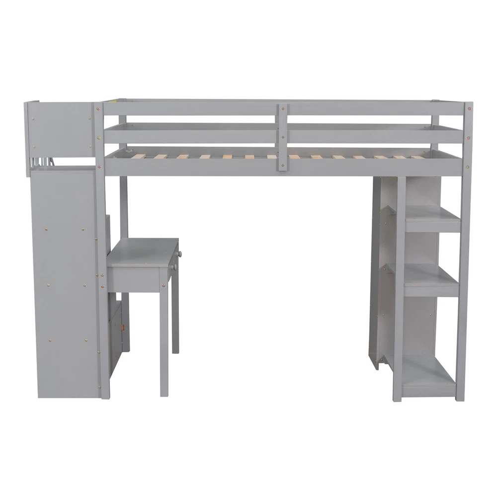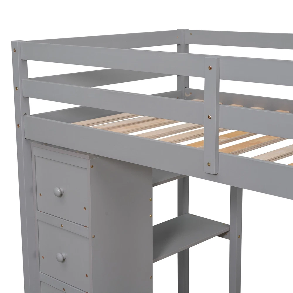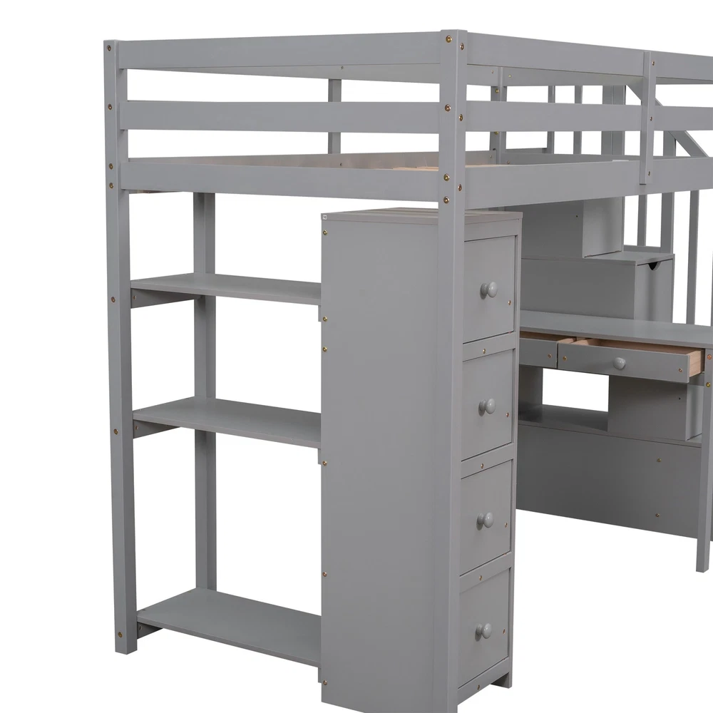 Brand Unbranded Type Bed frame UPC Does not apply Compatible Mattress Size Does not apply Color Gray Frame Material Solid Wood Twin size Loft Bed with Storage Drawers ,Desk and Stairs, Wooden Loft Bed with Shelves - Gray Twin size Loft Bed with Storage Drawers ,Desk and Stairs, Wooden Loft Bed with Shelves - Gray If your family needs a functional bed, then this loft bed will be a good choice for you, it will save you space and maximize functionality with multiple functions. This is the perfect study area while also having room to store your belongings. Beds with full rails ensure your sleep is safe. You don't have to worry about its quality. The bed has an elegant design that will fit nicely into your bedroom. Weight & Dimensions Overall Product Dimension 94.4"L x 41.8"W x 65"H Detail Product Dimension Please refer to the Size image Number of Package 3 Package Dimension Please refer to the Specification Overall Product Weight 248LBS Package Weight Please refer to the Specification Weight Capacity 300LBS Recommended Mattress Thickness 6" Recommended Age > 6 years old Specifications Product Type Loft Bed Size Twin Color Espresso/White/Gray Product material Plywood+MDF+Pinewood Number of slats 14 Level of Assembly Partial assembly Box Spring Required No Mattress Included No Estimated Time to Assemble 60 mins Suggested Number of People 2 Additional Tools Required All Tools Included Avoid power tools Yes Country of Origin Vietnam Notes Manual measurement has been used,there may be some reasonable error.Manual measurement has been used,there may be some reasonable error. v [Maximized space] It takes advantage of the floor space, and allows for a cozy rest, extra work and play space and makes a great piece of furniture for growing families.4 storage drawers, 1 desk as well as shelves, storage stairs, provide a lot of storage space v [Multifunctional bed] The space under the Twin loft bed is a great place for you to read, do homework or play, creating your own world of exploration. The storage space is strong, desk for study or work, and the stairs protect the safety of children. v [Solid Construction] This muti-functional loft bed is crafted from a solid pine wood frame, with commercial grade MDF board for quality control and durability. Guardrails are solidly attached for added safety. v [Health and Comfort] No box spring required, and without needing a foundation. The wood frame is sturdy and comes with slats for extra support and ensures air moves freely around your mattress to keep it fresh for years to come. v [Dimensions] : 94.4"L x 41.8"W x 65"H. Mattress not included. Some assembly is required, although we have provided clear instructions and tools. Item Specifics Brand Unbranded Type Bed frame Color Gray Frame Material Solid Wood Payment [ Policy: The above tab label style can be modified in left Basic - Footer Policy section. And this area is the details contents of your policies. You can add a banner for this policy as header and add text descriptions here. The text descriptions can be different Font Size, Font Color, Style and even graphics and icons are also accepted. ] Shipping [ Shipping: This is the contents of your Shipping. You can add a banner for this Shipping as header and add text descriptions here. The text descriptions can be different Font Size, Font Color, Style and even graphics and icons are also accepted. ] Returns [ Return: This is the contents of your Return. You can add a banner for this Return as header and add text descriptions here. The text descriptions can be different Font Size, Font Color, Style and even graphics and icons are also accepted. ] Contact Us [ Contact Us: This is the contents of your Contact Us. You can add a banner for this Contact Us as header and add text descriptions here. The text descriptions can be different Font Size, Font Color, Style and even graphics and icons are also accepted. ] DESCRIPTION PAYMENT SHIPPING RETURN POLICY CONTACT US Twin size Loft Bed with Storage Drawers ,Desk and Stairs, Wooden Loft Bed with Shelves - Gray Twin size Loft Bed with Storage Drawers ,Desk and Stairs, Wooden Loft Bed with Shelves - Gray If your family needs a functional bed, then this loft bed will be a good choice for you, it will save you space and maximize functionality with multiple functions. This is the perfect study area while also having room to store your belongings. Beds with full rails ensure your sleep is safe. You don't have to worry about its quality. The bed has an elegant design that will fit nicely into your bedroom. Weight & Dimensions Overall Product Dimension 94.4"L x 41.8"W x 65"H Detail Product Dimension Please refer to the Size image Number of Package 3 Package Dimension Please refer to the Specification Overall Product Weight 248LBS Package Weight Please refer to the Specification Weight Capacity 300LBS Recommended Mattress Thickness 6" Recommended Age > 6 years old Specifications Product Type Loft Bed Size Twin Color Espresso/White/Gray Product material Plywood+MDF+Pinewood Number of slats 14 Level of Assembly Partial assembly Box Spring Required No Mattress Included No Estimated Time to Assemble 60 mins Suggested Number of People 2 Additional Tools Required All Tools Included Avoid power tools Yes Country of Origin Vietnam Notes Manual measurement has been used,there may be some reasonable error.Manual measurement has been used,there may be some reasonable error. v [Maximized space] It takes advantage of the floor space, and allows for a cozy rest, extra work and play space and makes a great piece of furniture for growing families.4 storage drawers, 1 desk as well as shelves, storage stairs, provide a lot of storage space v [Multifunctional bed] The space under the Twin loft bed is a great place for you to read, do homework or play, creating your own world of exploration. The storage space is strong, desk for study or work, and the stairs protect the safety of children. v [Solid Construction] This muti-functional loft bed is 