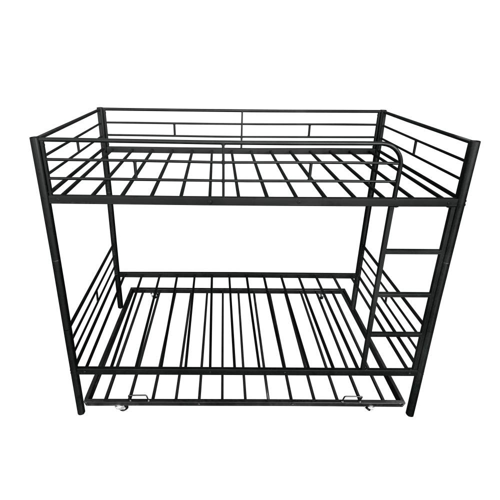 Twin Over Twin Separable Bunk Bed with Trundle - Black Steel Frame (GCC Certified) ✅ 1-Year Manufacturer’s Warranty | ✅ 30-Day Free Return & Exchange Maximize space and flexibility with this multi-functional Twin over Twin separable bunk bed—designed for growing families and small spaces! Crafted with a sturdy steel frame (made in Vietnam) and finished in sleek black, this bunk bed features a built-in trundle, dual-side ladders, and a convertible design that splits into two independent Twin beds. GCC (General Certificate of Conformity) certified for safety, it’s perfect for kids’ bedrooms, guest rooms, dorms, or vacation homes, blending durability, versatility, and peace of mind. 🌟 Standout Features You’ll Love ✅ Convertible Separable Design : Easily split this bunk bed into two standalone Twin beds with simple steps—adapt to changing needs (e.g., kids growing up, room rearrangements, or separate sleeping spaces). No extra tools required for conversion, making it a long-term investment for families. ✅ Built-In Trundle for Extra Sleep Space : Hidden trundle underneath the lower bunk provides an additional Twin sleeping surface—ideal for sleepovers, guests, or siblings. No box springs needed (mattresses sold separately), maximizing room space without sacrificing functionality. ✅ GCC-Certified Safety & Durability : Safety is prioritized! Upper bunk features full-length guardrails to prevent accidental falls, while the robust steel frame (with anti-rust coating) ensures stability and heavy-duty support. Passed GCC safety tests, complying with U.S. standards to protect kids from harm. Metal slats secure mattresses (prevent sliding) and extend mattress lifespan. ✅ Dual-Side Ladders & Space-Saving Design : Ladders on both sides offer easy access to the upper bunk and flexible room layout options. The bunk design saves floor space, and the under-bed clearance (without box springs) provides extra storage for toys, bins, or luggage—keeping rooms tidy. ✅ Fast & Easy Assembly : All necessary tools and a detailed instruction guide are included! Clear labeling and step-by-step directions let you assemble the bed quickly (most users finish in 2-3 hours with 2 people)—no professional skills required. 📐 Detailed Product Specifications Feature Details Product Type Twin Over Twin Separable Bunk Bed with Trundle Color/Finish Black (Steel Frame with Anti-Rust Coating) Material Frame: High-Quality Steel; Slat Support: Metal Slats Bed Sizes Upper: Twin; Lower: Twin; Trundle: Twin Overall Dimensions 77.95”L x 41.42”W x 64.96”H Product Weight 79.70 lbs Weight Capacity Upper Bunk: 200 lbs; Lower Bunk: 250 lbs; Trundle: 150 lbs Safety Certification General Certificate of Conformity (GCC) Compliant Safety Features Full-length upper bunk guardrails, anti-rust steel frame, stable slat support Key Design Features Separable (splits into 2 Twin beds), dual-side ladders, built-in trundle, no box spring required Recommended Mattresses All beds: 6” max thickness (mattresses not included) Recommended Use Kids’ Bedrooms, Guest Rooms, Dorms, Vacation Homes, Small Spaces Package Dimensions 79.53”L x 14.57”W x 7.09”H Package Weight 87.40 lbs Country of Origin Vietnam 📦 Secure Package Contents Heavy-Duty Steel Frame (Upper Twin + Lower Twin Bunk + Trundle) Metal Slat Support Systems (for all three sleeping surfaces) Full-Length Upper Bunk Guardrails Dual-Side Ladders All Assembly Hardware (screws, bolts, brackets) Step-by-Step Assembly Instructions Necessary Assembly Tools 🛡️ Trusted Guarantees for Peace of Mind ✅ 1-Year Manufacturer’s Warranty : We stand behind our craftsmanship! This bunk bed is covered for 1 year against manufacturing defects (e.g., faulty steel parts, broken slats, defective hardware, or anti-rust coating damage). We’ll repair or replace defective parts free of charge. ✅ 30-Day Free Return & Exchange : Not satisfied with your purchase? Return or exchange it within 30 days of delivery for a full refund—no questions asked! We cover all return shipping costs for a stress-free shopping experience. ✅ Responsive Customer Service : If parts are missing or damaged upon delivery, contact us immediately—we’ll reply within 24 hours to send replacements or resolve issues. 🛠️ Assembly & Care Tips Assembly : Lay a soft cloth on the floor during setup to protect the frame and flooring. Tighten all screws gradually for proper alignment—2 people recommended for efficiency. Follow conversion steps carefully if splitting into two beds. Care : Wipe the steel frame with a damp cloth and mild soap to clean; avoid abrasive cleaners that may scratch the anti-rust coating. Check guardrails, ladders, and hardware periodically to ensure tightness. Mattress Note : Mattresses are not included. For safety, use mattresses within the recommended 6” thickness to ensure guardrail effectiveness and trundle functionality. 📝 Important Notes Color Variation : The black anti-rust coating may appear slightly different due to lighting or screen display—refer to the actual product for the most accurate finish. Size Tolerance : Manual measurements may have minor variations (±0.5”), which is normal and does not affect safety or functionality. Weight Limits : Do not exceed stated weight capacities to prevent structural damage. The upper bunk and trundle are designed for children (not adults) due to safety and weight restrictions. This separable bunk bed with trundle is the ultimate space-saving, versatile solution for modern families—combining safety, durability, and adaptability. Backed by a solid warranty and free returns, it’s a purchase you can feel confident about.