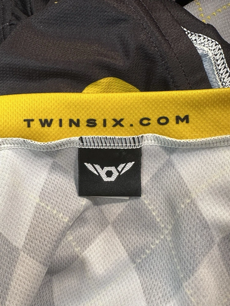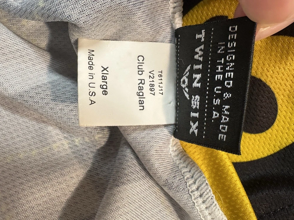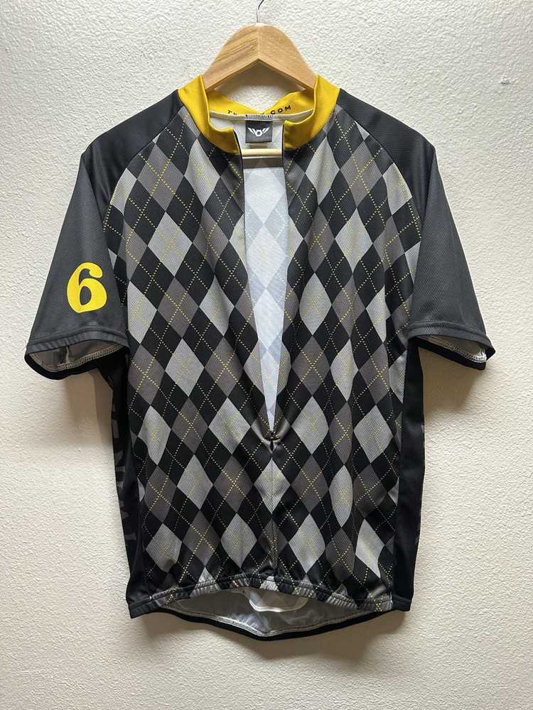 Twin Six Argyle Cycling Jersey XL Club Raglan USA Yellow Black Pockets Condition: Pre-owned. Good overall condition. Light wear consistent with use. No major flaws noted. Details: Twin Six Club Raglan cycling jersey Argyle print front panel Black & gray with yellow accents Yellow collar Number 6 graphic on sleeve Rear storage pockets Made in USA Breathable performance fabric Measurements (Laid Flat): Pit to Pit: 23” Length: 24” Sleeve: 9” Keywords: Twin Six jersey, cycling top, road bike jersey, club raglan, argyle cycling, men’s XL cycling, USA made cycling jersey, black yellow bike shirt