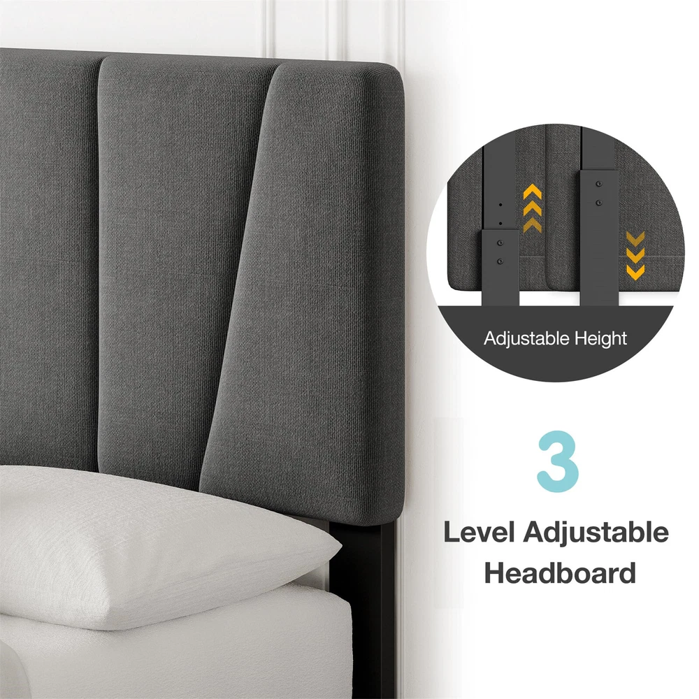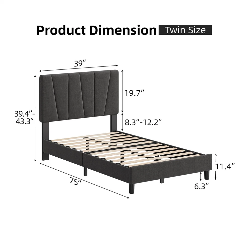 Twin Size Bed Frame with Adjustable Headboard Upholstered Platform Bedframe