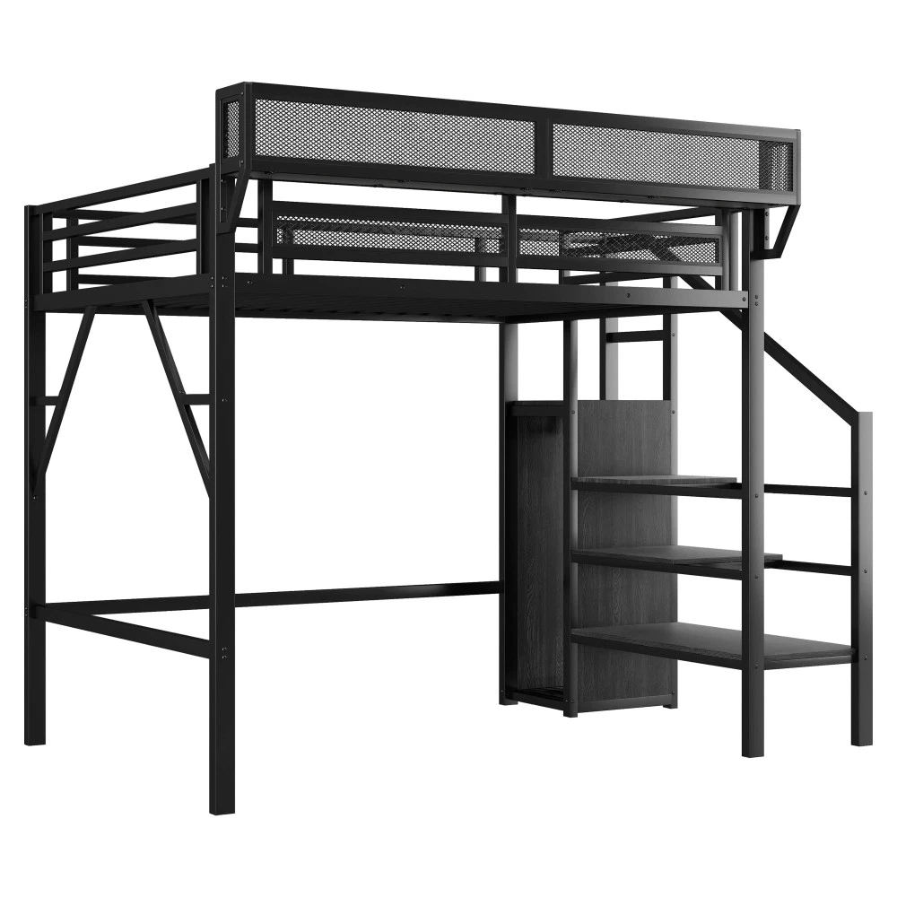$ 101.91Metal High Loft Bed with Wardrobe Stairs Storage Shelf Full Queen Size Bed Frame
