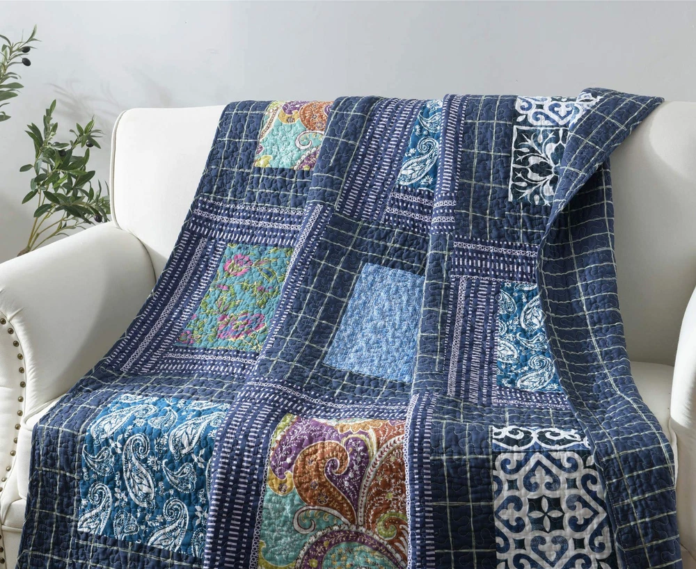 Original Cotton Patchwork Quilt Twin Size Quilted Throw Blankets for Couch Sofa Reversible Vintage Floral Paisley Navy Bedspread Coverlet Lightweight Bed Throws for Bed Home Bedroom Decor 💧PREMIUM MATERIAL - Cover: 100% cotton. Filler: 100% cotton. Using soft and breathable cotton, make the quilt blanket more durable and comfortable through all the season, yet lightweight. 💧SHABBY CHIC STYLE - Vintage/old fashioned floral print and gorgeous paisley quilt with unique patchwork crafts. Super soft cotton to create a lightweight, durable quilt blanket for year-round comforts. It is lightweight enough to carry from room to room, but heavy enough to keep you warm and comfortable. 💧QUILT SIZE - 59’’x79’’ (150 x 200 cm), perfect to be used as bed throws, quilted blanket for couch, sofa, chair, swing and daybed, or just as a home decoration. 💧UNIQUE DESIGN - Practical reversible design, both sides can be used individually. The beautiful colors and embroidered stitching is perfect to add lovely texture to your home. 💧CARE INSTRUCTION - Machine wash in cold water, gentle cycle, tumble dry low or sun dry. No Chlorine bleach or any additives. 💧【Note】Due to the design of vacuum packaging, the twin size quilt will have wrinkles, which can be restored by leaving it for a while or washing it.