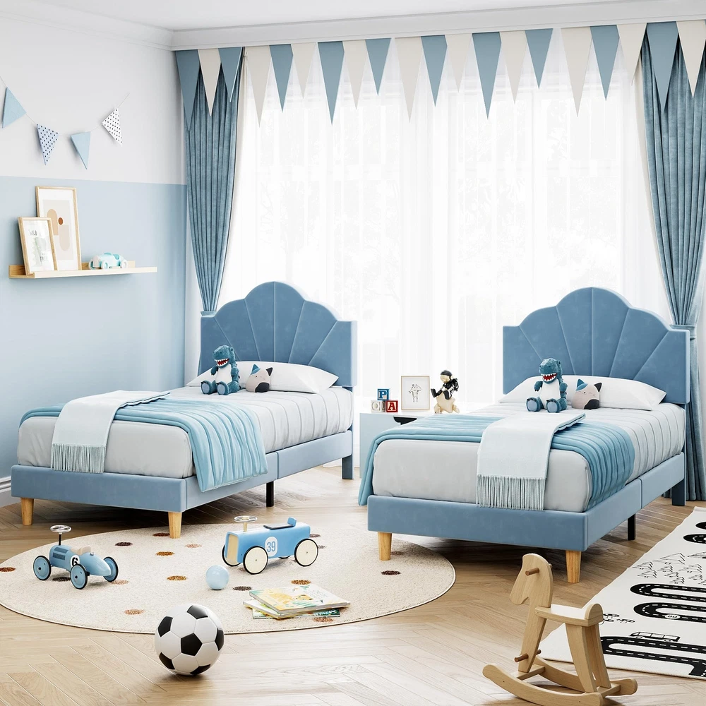About this item Sturdy Construction: Robust headboard and footboard, reinforced wooden slats, and metal support frames ensure long-lasting mattress stability and comfort. Built to last for years of reliable use. Elegant Upholstered Bed : The girl twin bed frame features a stylish headboard with velvet upholstery for a stylish and cozy look. Its clean silhouette and timeless elegance bring modern style with a touch of romance. Adjustable Headboard: Adjustable twin headboard ensures a fully connection with the mattress, which is more stronger and can prevent your mobile phone or other small things falling down to the floor. Easy Assembly: Clearly labeled parts and precise instructions make assembling this pink velvet twin bed frame a breeze. Quick and easy setup, taking just 30 minutes for an adult to complete. Twin Bed Dimensions: Twin upholstered bed frame overall size 77.2"Lx40.7"Wx46.1"H. Mattress not included, no box spring needed, instruction and tools included for easy assembly. Product Description Why choose the twin bed frame? Cross Frame Design Fashionable Shell Headboard Solid Metal Frame Adjustable Headboard Comfortable Velvet Fabric Noise Free Easy Assembly No Box Spring Needed IDEALHOUSE Twin Bed Frame Enhanced Stability Sturdy metal frame with cross frame design, 2 large round wooden legs and additional 3 metal support legs for improved stability and durability. Elegant Upholstered Bed The twin bed frame features a stylish headboard with velvet upholstery for a stylish and cozy look. Its clean silhouette and timeless elegance bring modern style with a touch of romance. Luxury Velvet Fabric The upholstered platform bed frame is enveloped in sumptuous velvet fabric, offering a soft, comfortable, and stylish addition to your bedroom decor. Stylish Kids' Bed Upgrade your child's room with this chic bed frame featuring a shell headboard and classic design. The clean lines and timeless elegance bring a contemporary and romantic touch to their space. Effortless Assembly The bed frame features adhesive strips along the entirety of the wooden slats, reducing assembly time and ensuring a quiet and restful night's sleep. Enhanced Support The bed frame boasts widened and sturdy wooden slats, delivering strong and stable support. Experience superior comfort and durability with our reliable design. Payment Delivery details Terms of sales About us Contact us Payment We accept payment either via PayPal or any of the following credit cards; Visa, MasterCard, Discover, and American Express. Delivery details 1. We will delivery out at the handing time when we receive the payment. 2. The delivery time is 3-5 business days to US by usually time.The parcel maybe delay 1-2day of the weekend.Due to the bad weather,Holidays,Hot Season ect.the parcel maybe delay,If you have any problems,mssage us,we will try our best to solve it. 3. We ship to your eBay address. Please make sure your eBay address is correct before you pay. 4. If you want to change the shipping address,message us before our send out. Terms of sales If you are not satisfied with the item for any reason, please do not quick to leave negative/neutral feedback even open request and case without any communication with us. We devote ourselves making EVERY CUSTOMER in 100% Satisfactory and resolve any problem. Thank you for your understanding and recognition,we are always leave positive feedback to all our customers. About Reply: All replies will be sent to your email box, if you do not get response within 24 hours (Sat. & Sun. excluded) please check your eBay My Messages in case that our emails will be filtered automatically by your settings. About us automobilee-01 is a brand new store but we are one of North America’s top online suppliers of specialized, high-quality aftermarket online retailers and suppliers, committed to developing new markets. We primarily offers tool sets, auto parts, home goods, etc..With over 20 years of product selection and manufacturing experience, we delivers unparalleled quality, value, service and satisfaction. Our highly-trained, professional staff offer in-depth knowledge and personalized assistance for customers worldwide. Providing our customers with a simple, hassle-free experience with best-in-class customer service is more than a goal. Contact us Any problem please rest assure to contact us by eBay message first. We will reply you as soon as we can. We will deal with it within 24hs on working days. Brand Unbranded Compatible Mattress Size Twin Type Bed Frame Features Sturdy and Durable, Easy Assembly, No Box Spring Needed, Adjustable Headboard Color Blue Mattress Included No Assembly Required Yes Style Contemporary/Modern Shape Rectangular MPN Does not apply Care Instructions Easy Care Room Bedroom Country/Region of Manufacture China Product Dimensions 77.2"L x 40.7"W x 46.1"H Department Kids Frame Material Metal, MDF Board, Velvet Manufacturer Warranty 5 Years Item Length 77.2 in Item Width 40.7 in Item Height 46.1 in