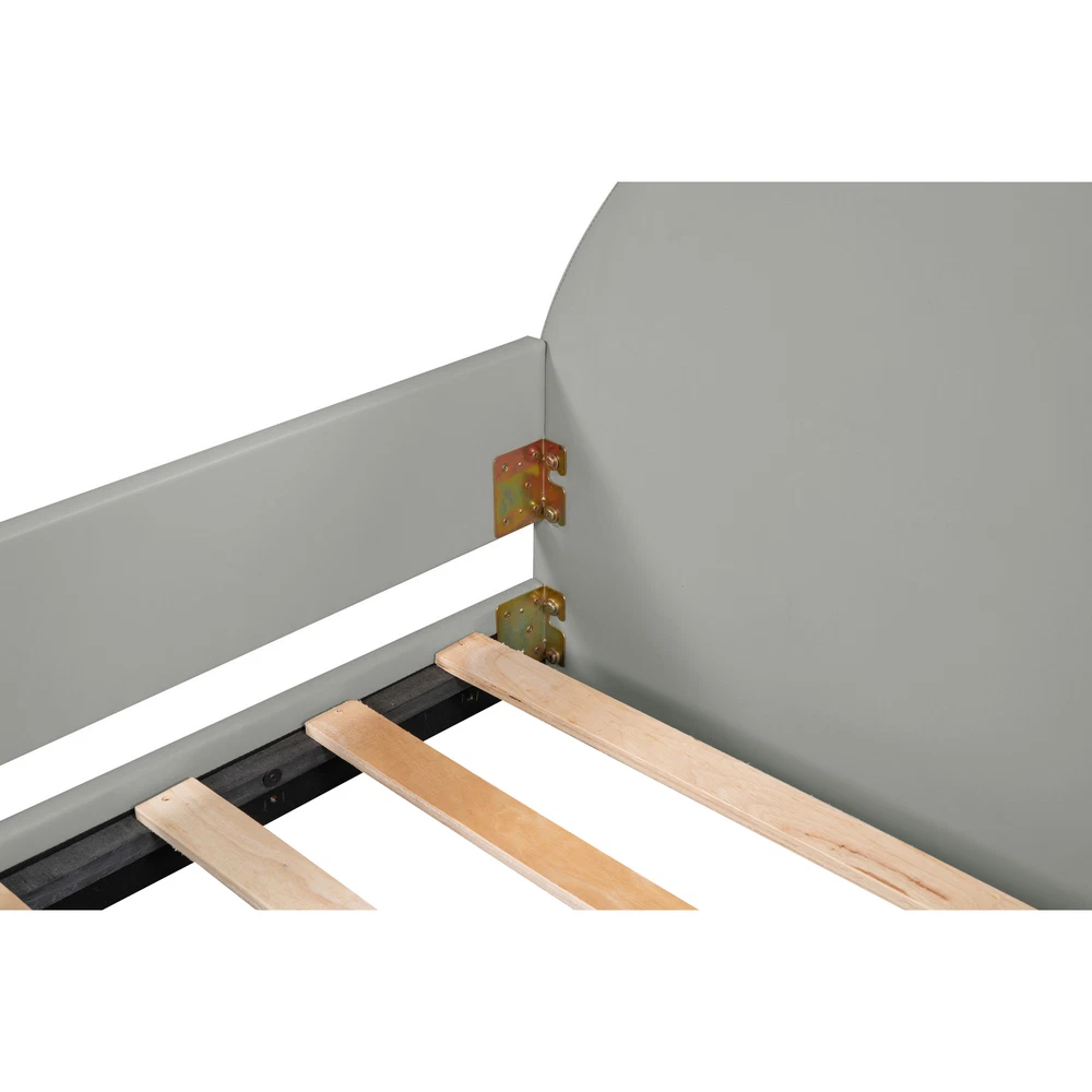 This platform bed showcases a low-profile silhouette and clean lines for a modern look in your bedroom or guest room. The frame is built from pine wood and, and it rests on splayed legs with a light finish. This bed is upholstered with a medley of colors to choose from that best suits your style. The headboard in the shape of carton ears provides you with a soft backrest which is cute and practical. ①[Sturdy Frame] Constructed with a durable wood frame with high-quality hardware that provides a strong and sturdy bed. ②[Convenient Design] Built low to the ground to help your little one get in and out of bed easily. Generous padding ensures-lasting comfort and support while sitting up to read or watch TV. ③[Lively Color] Perfect for your little one's bedroom, this twin daybed shows off lively color upholstery with a playful scalloped silhouette for a look both you and your little one will love. ④[Solid Construction] That's why all products are built with-lasting materials to ensure they stand up to years of jumping and playing.