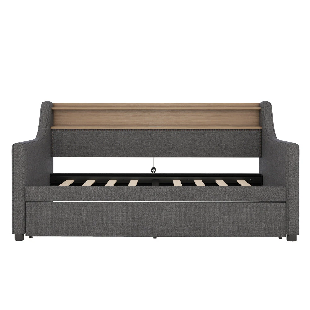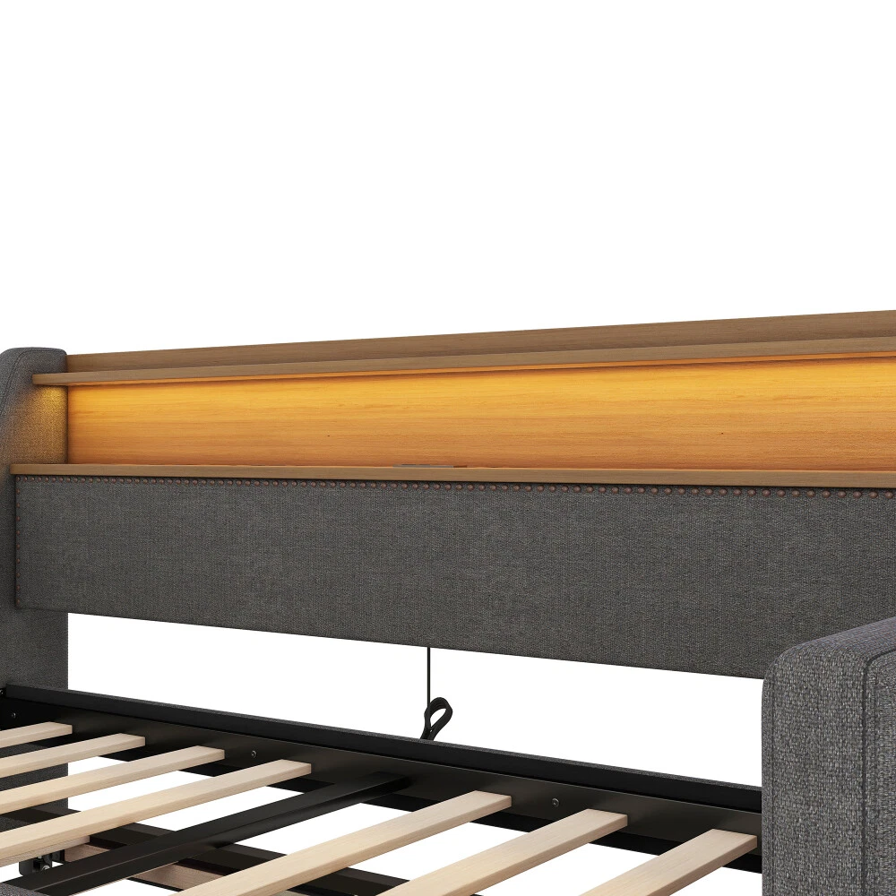 Twin Upholstered Daybed with Trundle, Charging Station, and LED Lights