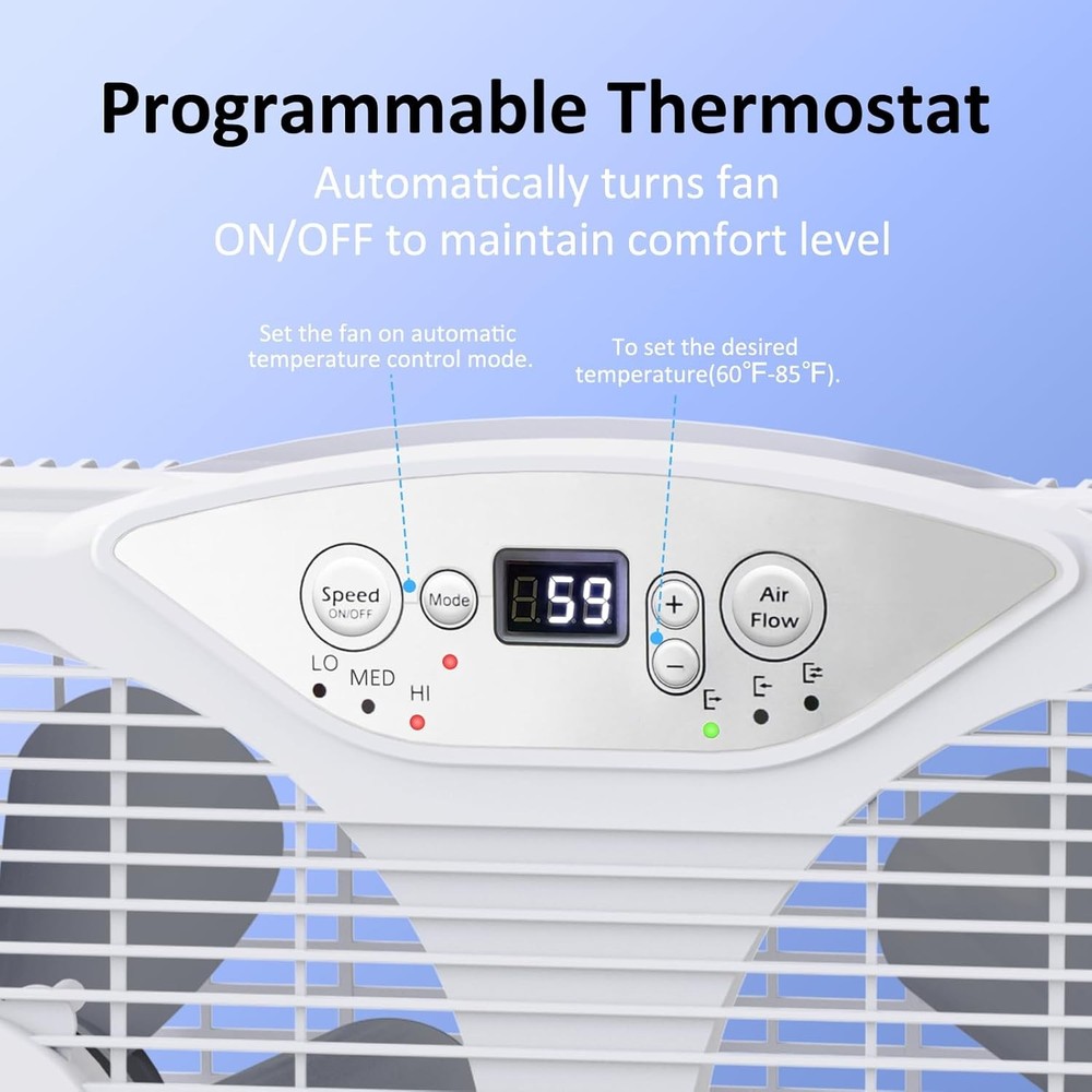 Product description Shinic - Home Appliances A trusted brand professional in home comfort appliances for over 20 years. Shinic has been providing the best quality products with exceptional value for world customers over the decades and still innovating! Packing List 1* Twin Window Fan 1* Remote 1* User's Manual Foam Seal Strip (2.23ft x 1Rolls) 1-Year Limited W a r r a n t y Twin Window Fan, Reversible Airflow, Remote Control -Programmable Thermostat & Room Temp Display This window fan with remote, has multiple functions of Cool, Exhaust and Circulation to make the indoor air fresh, especially for apartment, living room, kitchen or bathroom. The automatic operating mode, turns fan off/on to maintain selected comfort level. Sometimes, this twin window fan more better than A.C. can save electricity and keep you cool and save money. 3 Modes: Cooling, Exhaust, Circulation 3 Speed Settings: Low, Medium, High Remote Control: Full Function Digital Display Temperature Control Mode Built-in Adjustable Slide Screens with Lock (23.8-37 inches) Product Size (Feet not installed): 23.8"W x 4.0"D x 12.2"H Product Size (Feet installed): 23.8"W x 5.5"D x 12.8"H Electric Cord: 120V A.C. / 60Hz ; ETL Certification Programmable Thermostat Programmable thermostat turns fan off/on to maintain selected comfort level (60℉-85℉). Carrying Handle The built-in handle can help easily remove this small window fan to the other place. Accordion Extenders Expandable window exhaust fan, adjusted from 23.8 inches to 37 inches to fit most window sizes. Standing Options Equipped with two sturdy detachable legs that can be installed for desktop use Standing window fan for tabletop use Designed as a reversible window fan, also perfectly use on a tabletop (install the legs). Window fan with remote for bedroom To use this fan to keep your bedroom comfortable this summer. Vertical window fan for kitchen Well-suited for rooms with serious exhaust needs, like steamy bathroom and smoky rooms. Cut the tape to the size you need. Peel off the strong traceless adhesive backing film. Apply the seal tape to the window fan. On Jan 15, 2026 at 00:00:11 PST, seller added the following information: