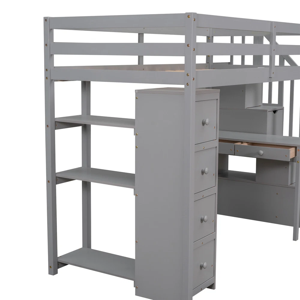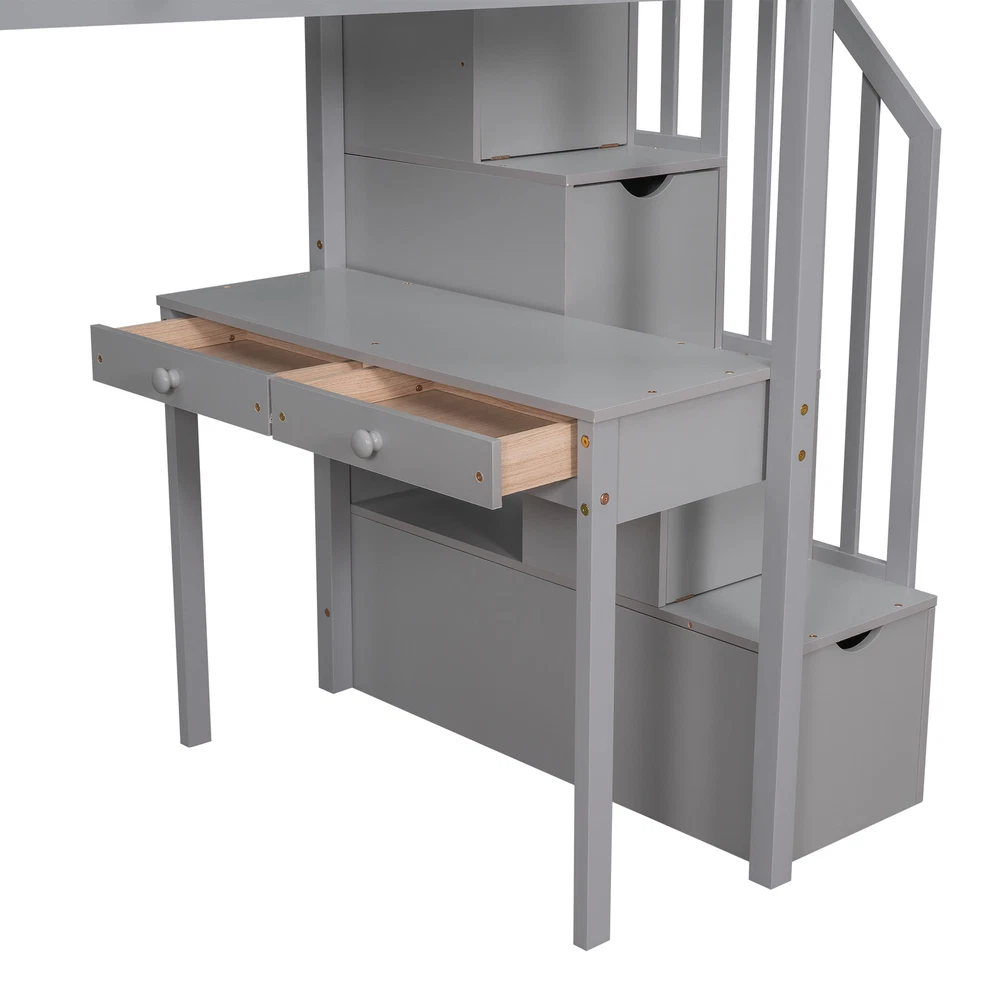 Twin size Loft Bed with Storage Drawers ,Desk and Stairs, Wooden Loft Bed with Shelves - Gray If your family needs a functional bed, then this loft bed will be a good choice for you, it will save you space and maximize functionality with multiple functions. This is the perfect study area while also having room to store your belongings. Beds with full rails ensure your sleep is safe. You don't have to worry about its quality. The bed has an elegant design that will fit nicely into your bedroom. Weight & Dimensions Overall Product Dimension 94.4"L x 41.8"W x 65"H Detail Product Dimension Please refer to the Size image Number of Package 3 Package Dimension Please refer to the Specification Overall Product Weight 248LBS Package Weight Please r... Twin size Loft Bed with Storage Drawers ,Desk and Stairs, Wooden Loft Bed with Shelves - Gray Twin size Loft Bed with Storage Drawers ,Desk and Stairs, Wooden Loft Bed with Shelves - Gray If your family needs a functional bed, then this loft bed will be a good choice for you, it will save you space and maximize functionality with multiple functions. This is the perfect study area while also having room to store your belongings. Beds with full rails ensure your sleep is safe. You don't have to worry about its quality. The bed has an elegant design that will fit nicely into your bedroom. Weight & Dimensions Overall Product Dimension 94.4"L x 41.8"W x 65"H Detail Product Dimension Please refer to the Size image Number of Package 3 Package Dimension Please refer to the Specification Overall Product Weight 248LBS Package Weight Please refer to the Specification Weight Capacity 300LBS Recommended Mattress Thickness 6" Recommended Age > 6 years old Specifications Product Type Loft Bed Size Twin Color Espresso/White/Gray Product material Plywood+MDF+Pinewood Number of slats 14 Level of Assembly Partial assembly Box Spring Required No Mattress Included No Estimated Time to Assemble 60 mins Suggested Number of People 2 Additional Tools Required All Tools Included Avoid power tools Yes Country of Origin Vietnam Notes Manual measurement has been used,there may be some reasonable error.Manual measurement has been used,there may be some reasonable error. v [Maximized space] It takes advantage of the floor space, and allows for a cozy rest, extra work and play space and makes a great piece of furniture for growing families.4 storage drawers, 1 desk as well as shelves, storage stairs, provide a lot of storage space v [Multifunctional bed] The space under the Twin loft bed is a great place for you to read, do homework or play, creating your own world of exploration. The storage space is strong, desk for study or work, and the stairs protect the safety of children. v [Solid Construction] This muti-functional loft bed is crafted from a solid pine wood frame, with commercial grade MDF board for quality control and durability. Guardrails are solidly attached for added safety. v [Health and Comfort] No box spring required, and without needing a foundation. The wood frame is sturdy and comes with slats for extra support and ensures air moves freely around your mattress to keep it fresh for years to come. v [Dimensions] : 94.4"L x 41.8"W x 65"H. Mattress not included. Some assembly is required, although we have provided clear instructions and tools. Item Specifics Brand Unbranded Type Bed frame Color Gray Frame Material Solid Wood Payment [ Policy: The above tab label style can be modified in left Basic - Footer Policy section. And this area is the details contents of your policies. You can add a banner for this policy as header and add text descriptions here. The text descriptions can be different Font Size, Font Color, Style and even graphics and icons are also accepted. ] Shipping [ Shipping: This is the contents of your Shipping. You can add a banner for this Shipping as header and add text descriptions here. The text descriptions can be different Font Size, Font Color, Style and even graphics and icons are also accepted. ] Returns [ Return: This is the contents of your Return. You can add a banner for this Return as header and add text descriptions here. The text descriptions can be different Font Size, Font Color, Style and even graphics and icons are also accepted. ] Contact Us [ Contact Us: This is the contents of your Contact Us. You can add a banner for this Contact Us as header and add text descriptions here. The text descriptions can be different Font Size, Font Color, Style and even graphics and icons are also accepted. ] DESCRIPTION PAYMENT SHIPPING RETURN POLICY CONTACT US Twin size Loft Bed with Storage Drawers ,Desk and Stairs, Wooden Loft Bed with Shelves - Gray Twin size Loft Bed with Storage Drawers ,Desk and Stairs, Wooden Loft Bed with Shelves - Gray If your family needs a functional bed, then this loft bed will be a good choice for you, it will save you space and maximize functionality with multiple functions. This is the perfect study area while also having room to store your belongings. Beds with full rails ensure your sleep is safe. You don't have to worry about its quality. The bed has an elegant design that will fit nicely into your bedroom. Weight & Dimensions Overall Product Dimension 94.4"L x 41.8"W x 65"H Detail Product Dimension Please refer to the Size image Number of Package 3 Package Dimension Please refer to the Specification Overall Product Weight 248LBS Package Weight Please refer to the Specification Weight Capacity 300LBS Recommended Mattress Thickness 6" Recommended Age > 6 years old Specifications Product Type Loft Bed Size Twin Color Espresso/White/Gray Product material Plywood+MDF+Pinewood Number of slats 14 Level of Assembly Partial assembly Box Spring Required No Mattress Included No Estimated Time to Assemble 60 mins Suggested Number of People 2 Additional Tools Required All Tools Included Avoid power tools Yes Country of Origin Vietnam Notes Manual measurement has been used,there may be some reasonable error.Manual measureme