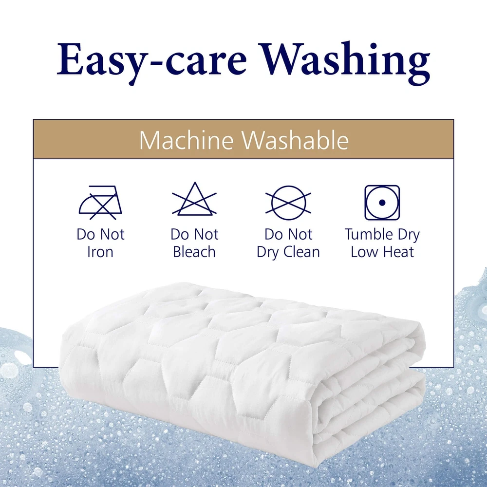 Fantastic Protection: Our top quality mattress cover effectively Protects your mattress from dirt, dust and dander. This mattress pad is surely a grand one! Hypoallergenic, Comfortable to sleep on. Without any Plastic Noise When Moving Around. Fits Perfectly Well, Deep Pockets, Came In a Clear Plastic Carrying Case That Will Be Great for Storage and Travel. The nice stitching pattern gives it that fine touch. Keeps everything together and in place, It will not slip off of your bed... All Sizes: Twin: 39x75x10”. The 12" skirt will stretch to fit a mattress up to 14" deep! Twin XL: 39x80x10”. The 16" skirt will stretch to fit a mattress up to 14" deep! Full: 54x75x12". The 12" skirt will stretch to fit mattress up to 16" deep! Full XL: 54x80x12”. The 16" skirt will stretch to fit mattress up to 16" deep Queen: 60x80x14". The 16" skirt will stretch to fit a mattress up to 18" deep! King: 78"x80x14". The 15" skirt will stretch to fit a mattress up to 18" deep! Cal King: 72 x 84x14". The 16" skirt will stretch to fit a mattress up to 18" deep! Style: Quilted, Fitted. Top fabric: 50% cotton/50% polyester. Back: 100% polyester. Skirt: 100% polyester. Fill: 100% polyester. MATTRESS PROTECTOR: Mattress Pad will not only restore your mattress’ look to a beautiful appearance, but it will protect your current mattress from any further damage. By acting as a protective barrier, mattress pad helps shield your mattress from spills, stains, and general wear and tear, effectively prolonging its lifespan. SOFT & SMOOTH POLY-COTTON MATERIAL: mattress pad combines two of the best materials for bedding; cotton and polyester. The Mattress pad has the softness and smoothness that polyester offers and the comfort and coolness is delivered by the high quality cotton we material. HYPOALLERGENIC: Made from high quality cotton and polyester has been designed from hypoallergenic materials to ensure a comfortable and easy sleep. DURABLE AND LONG LASTING: Mattress Cover is made from high quality material ensuring it will not fade or fall apart even after years of use. QUICK AND EASY TO FIT ON BED: Simply slip our mattress pad over your mattress, secure it with the elasticized skirt, and enjoy instant comfort and protection.