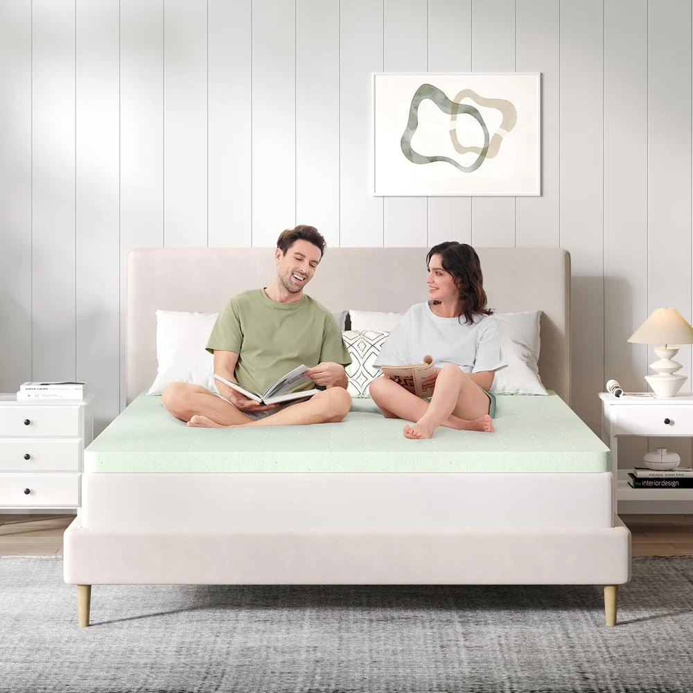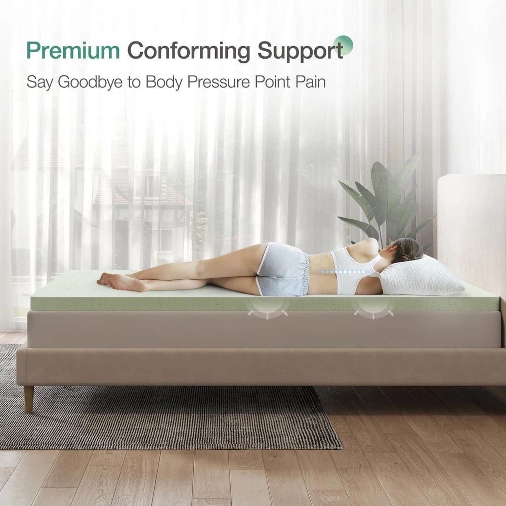 Are you looking for a suitable mattress topper to improve your sleep experience? Combined with CertiPUR-US certified -infused memory foam and supportive high-density foam, mattress topper provides you with cooling sleep comfort and the perfect balance of firmness tailored to your needs. The mattress topper is available in 5 sizes-Twin, Twin XL, Full, Queen, King, perfect to upgrade your master bedroom, ' room, guest room or college dorm. Also, The portable mattress topper is an ideal option for temportary sleep, whether you are relaxing on the sofa at home or going camping in outdoors. It is convienent to take the topper anywhere you want, adding softness, breathability and comfort to your sleep. Simply allow the compressed foam mattress topper to fully expand for 48 hours. If you have any inquiries about the mattress topper, Customer Support Team are always here to help you. What's in the box? 1 x mattress topper 1 x card 1 x package opener Note: 1. The expansion time will vary as the surrounding. Your mattress topper takes slightly longer time to regain its full size in cold temperature. 3. Sleep experience about firmness will be affected by individual body weight, shape and sleeping habits. BREATHABLE & COOLING - The open-cell ventilated design is skillfully designed to enhance airflow and dissipate body heat. The -infused mattress topper keeps you in a cozy sleep climate. You will wake up with energy and vitality to tackel the day effectively. PRESSURE & CONTOURING SUPPORT - Memory foam actively adapts to your body curves for personalized comfort and relieves pressure point aches and pains. Combined with high-density foam design, the mattress topper distributes body weight evenly and provide robust support to all parts of your body. CertiPUR-US CERTIFIED - The premium memory foam has passed CertiPUR-US Certification, without any harmful substance. The mattress topper meets requirements for durability, content and emissions. It takes and eco-friendliness to a new level, particularly for people with sensitive skin. INCREASE SOFTNESS AND COMFORT - The 2 inch memory foam mattress topper is the perfect option for offering extra softness and comfort to any mattress. Whether you feel like your mattress is too firm or leaves you with aches in the morning, simply placing it on the top of your mattress or under your mattress cover. WORRY-FREE PURCHASE - mattress topper provides 3-year limited . Your -infused memory foam arrives compressed, roled and shipped in a box, conveniently to your doorstep for quick and easy setup. In order to get a pleasant sleeping experience, please allow the mattress topper to regain its full shape within 48 hours.