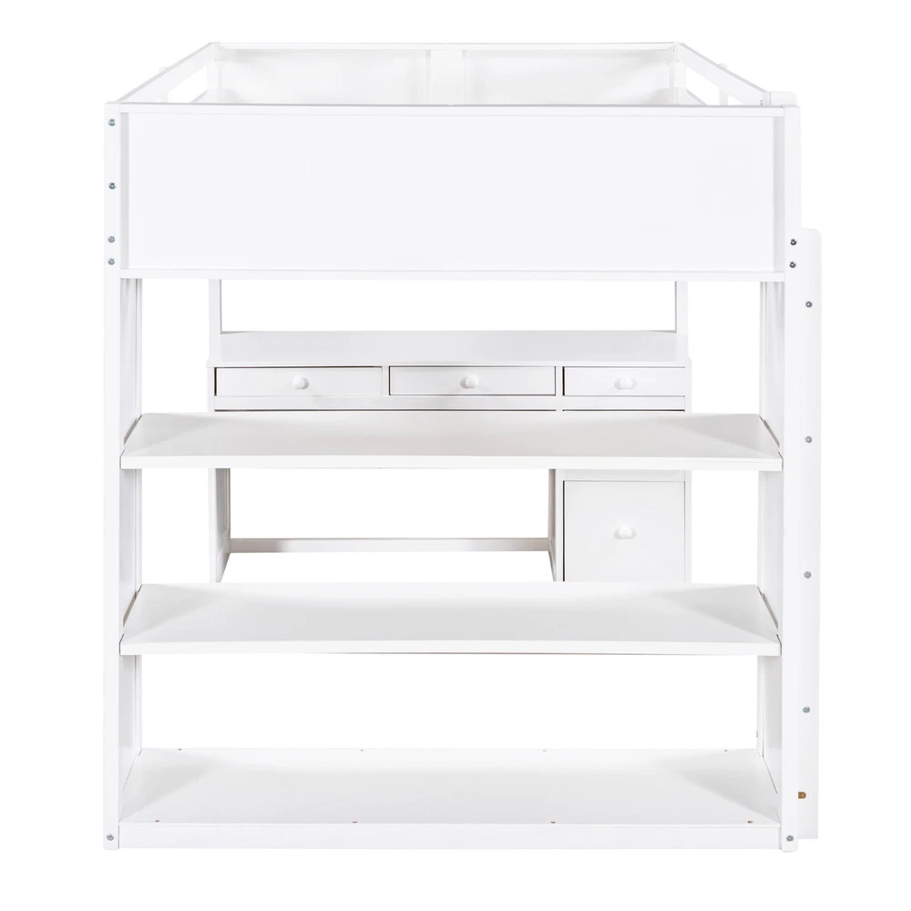 Description: If your family needs a bed that can sleep and study, this loft bed will be a good choice for you, it will have you saving space and maximizing functionality with a wide array of features. It is a perfect study area while also allowing space to store your belongings. Shelves and drawers under the bed can provide perfect space for individual creativity. The bed with comprehensive guardrails to ensure your sleep safety. You don't need to worry about its quality. The design of the bed is elegant and can fit into your bedroom well. Specification: [Maximized space] The space underneath the loft bed is a good place for you to read, do homework or play and create their own world to be explored. Total 3 shelves and 5 drawers provides maximum space for your decor, books. [Multi-function] We offer 2 different color schemes, which you can choose most suitable color matching your bedroom design. With unique design, this bed creates a fun and adorable space that not only serves as a comfortable sleeping area, but also double as a space for you to study or work. [Solid Construction] This muti-functional loft bed is crafted from a solid pine wood frame, with commercial grade MDF board for quality control and durability. Guardrails are solidly attached for added safety. [Health and Comfort] No box spring required, and without needing a foundation. The wood frame is sturdy and comes with slats for extra support and ensures air moves freely around your mattress to keep it fresh for years to come. Shipment We'll arrange orders in 1~2 working days, tracking number will be provided on eBay. For a few big items shipped by truck, need more handling time. Wholesale We offer better prices for wholesale customers Return 30-days return policy for any reason you are unhappy with your purchase.Return items must be in original condition. The cost of returning goods should be paid by your side. The return delivery cost will be paid by us if returning faulty/defective goods. Feedback Do contact with us for any quesiton , we will make you 100% satisfy for the purchase.