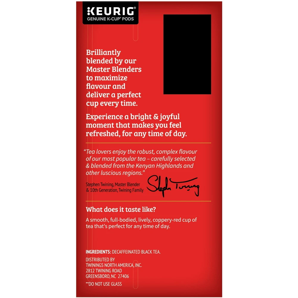Twinings 24 K-Cup Pods For Keurig, Herbal Tea Blend with Flavours of Lemon and Ginger, Naturally Caffeine Free The expert blenders at Twinings have combined the two great flavours of Lemon and Ginger for a lively and enjoyable caffeine free herbal tea experience. To brew the perfect cup, use a Keurig or other single-serve brewer; For hot tea, select the 6 oz. or 8 oz. brew button for optimal flavour; For Iced Tea brew over a tumbler of ice using the 8 oz. option. Herbs have a long history of documented use tracing back to Ancient Egypt, Ancient China and to the beginning of Ayurveda science in India. Herbal teas can be made from any combination of flowers, leaves, seeds, roots, citrus or berry fruits herbs and spices-which is why the number of unique blends available is virtually limitless. Camomile (or Chamomile), Peppermint, Ginger and Hibiscus are some of the most popular ingredients used today. At Twinings, we believe in living well and enjoying life. Backed by generations of trusted knowledge and ethical integrity, our Master Blenders are committed to delivering nature’s goodness and ensuring consistent taste and quality by sourcing the world’s finest herbs, fruits, and teas. From traditional teas to functional blends, Twinings encourages consumers to “Drink in Life” by celebrating the small steps that make wellbeing attainable and remain committed to an optimistic life that is well-lived, one sip at a time. The expert blenders at Twinings have combined the flavours of lemon and ginger for a lively and enjoyable herbal tea experience. Our herbal tea is naturally caffeine free for you to enjoy at any time of day. To brew the perfect cup of tea, use a Keurig or other single-serve brewer; For hot tea select the 6 oz or 8 oz brew button for optimal flavour. For iced tea, brew over a tumbler of ice using the 8 oz option. Herbal "tea" is not technically tea, because it is not made from the Camellia Sinensis plant. The more appropriate name for an herbal tea is a "tisane" or "infusion." 24 K-Cups Pods for Keurig Through our Sourced with Care initiative we improve communities with access to water and sanitation, empowering women, and enhancing incomes and resilience through income diversification and careful farming practices. Packaging may vary - new look with the same great quality!