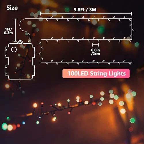 Twinkle Lights Battery Operated 100 LED Christmas String Lights 100L Multicolor