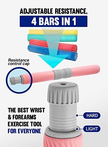 Twist Grip Adjustable Resistance Bar for Physical Therapy, Relieves Pink