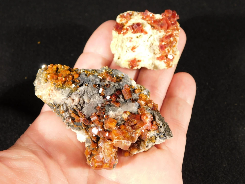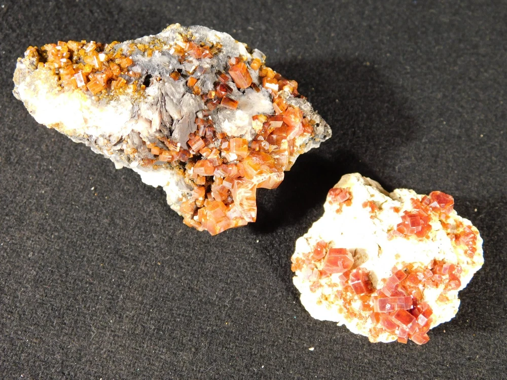 Two 100% Natural Orange Vanadinite Crystal Clusters from Morocco 189gr