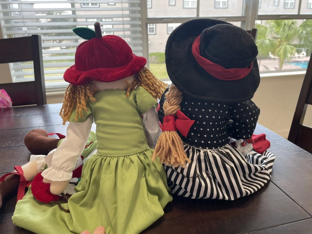 Two Cracker Barrel Rag-Doll Shelf Sitter Rooster Chicken Apple Annie w/tags