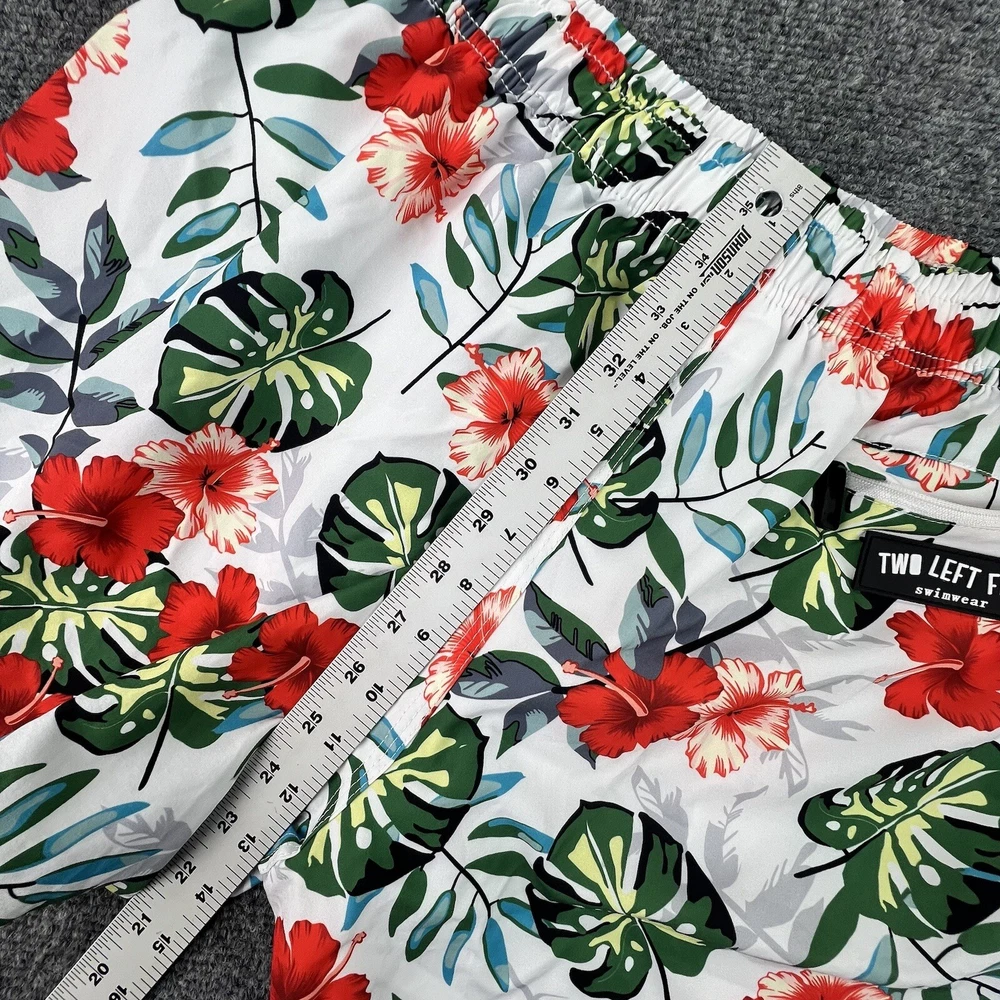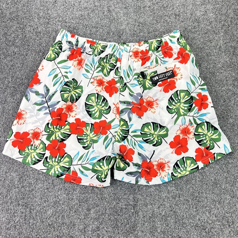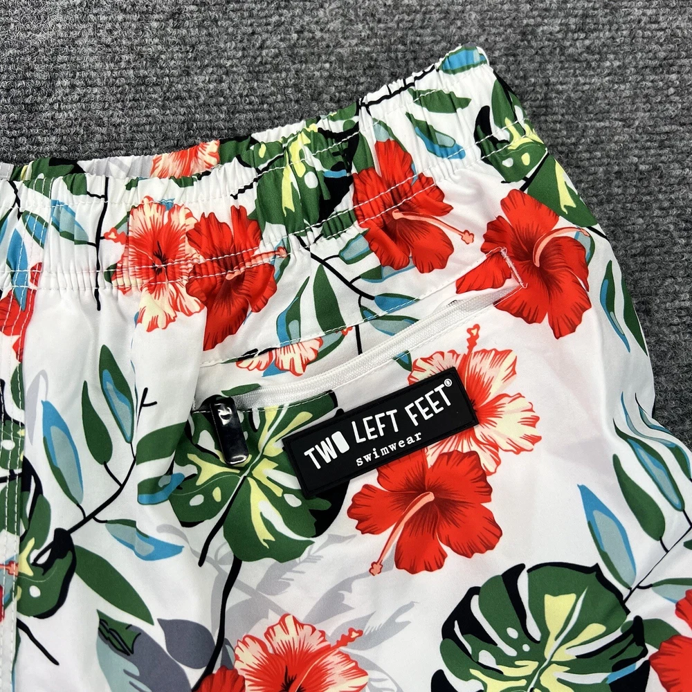Two Left Feet Swim Trunks Mens 2XL Floral Hawaiian Lined Swim Shorts