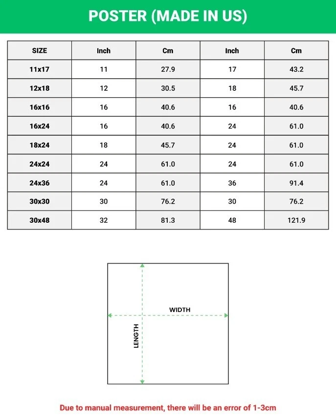 PRODUCT DETAILS Make your room more colorful and add characters to your space with this simple custom Poster. Made from high-quality paper, our posters are perfect to hang on the wall. You can easily decorate any space from a party, bedroom, bathroom, kids’ room, living room, office, dorm, and more with our print-on-demand poster without a frame. High-quality resin-coated photo-base paper Satin photo finish, maximum color gamut, dmax, and image resolution Heavyweight (230 gsm); 9 mil base Ships in protective tube Lasts 95 years inside. 5 years in direct sunlight