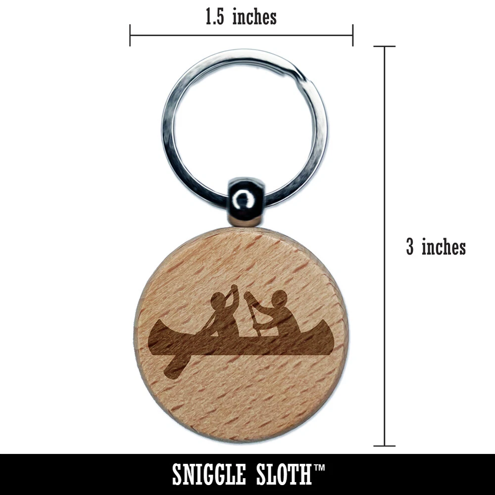 Two Person Canoe Team Water Boat with Paddle Engraved Wood Round Keychain