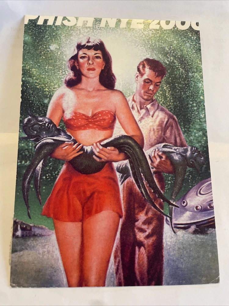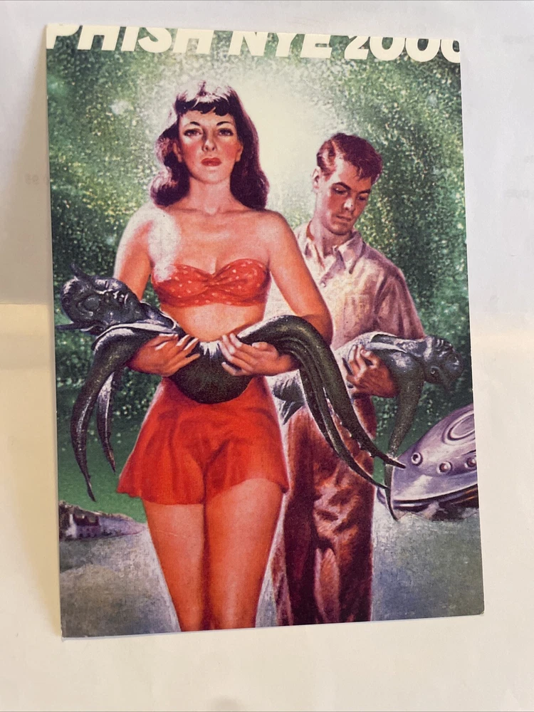 This rare Phish Y2K postcard from the year 2000 features the iconic band performing at the Big Cypress Florida festival. The postcard is a must-have for any music memorabilia collector, especially those who are fans of Phish and rock & pop music. The card captures the essence of the band's live performances and is a great addition to any collection.