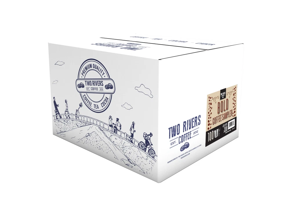 Two Rivers Coffee Bold Roast Coffee Pods, Compatible with 2.0 Keurig K-Cup Brewers, Variety Sampler Pack, 100 Count 55.00 Those that choose to be bold choose this bold single serve coffee variety Pack. Perfect for lovers of good strong coffee. Product Details • Contains extra bold coffees: dark and medium roast coffee. Individual flavor may vary! • Two Rivers Coffee sampler packs allows you to enjoy an assortment of beverages without buying so many different boxes. Your coffee, tea, hot cocoa, cider, cappuccino headquarters. Yeah... We got you covered. • Compatible with 2.0 Keurig K-Cup Brewer. • Two Rivers Coffee is not affiliated or endorsed by Keurig Dr Pepper. Keurig Dr Pepper, Keurig, K-Cup and green Mountain are registered trademarks of Keurig Dr Pepper. • Your Coffee, Tea, Hot Cocoa, Cider, Cappuccino headquarters. Yeah... We got you covered.