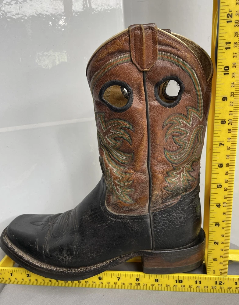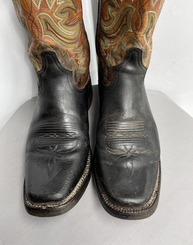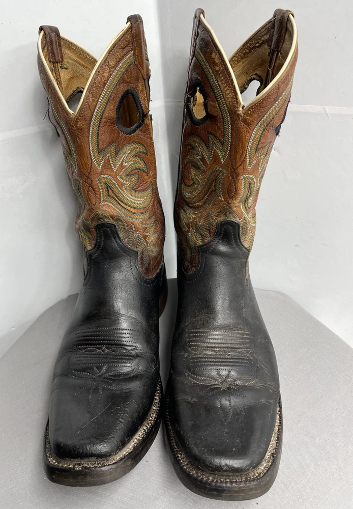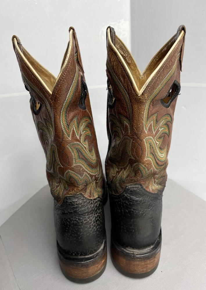 Department: Men Upper Material: Leather Color: Multicolor Features: Comfort Style: Western Pattern: Western Type: Boot Closure: Pull On Shoe Width: D Toe Shape: Square Toe Brand: Unbranded US Shoe Size: 7.5 Theme: Cowboy, Motorcycle, USA