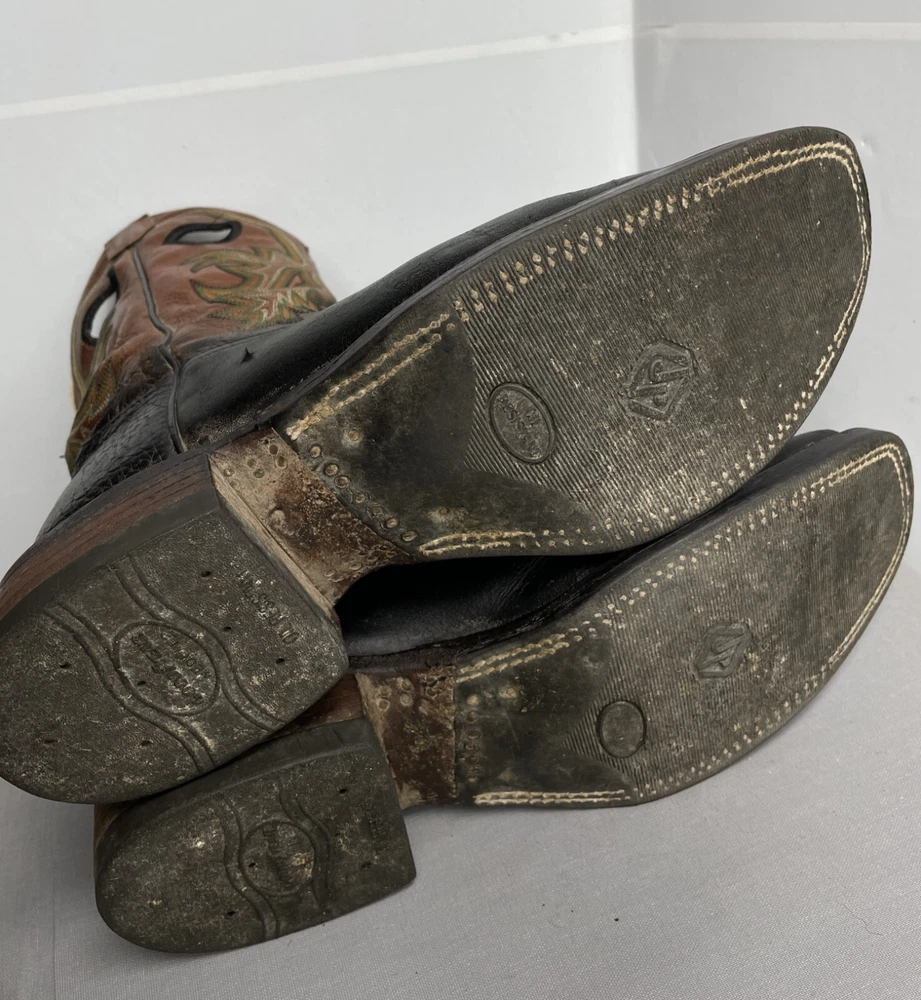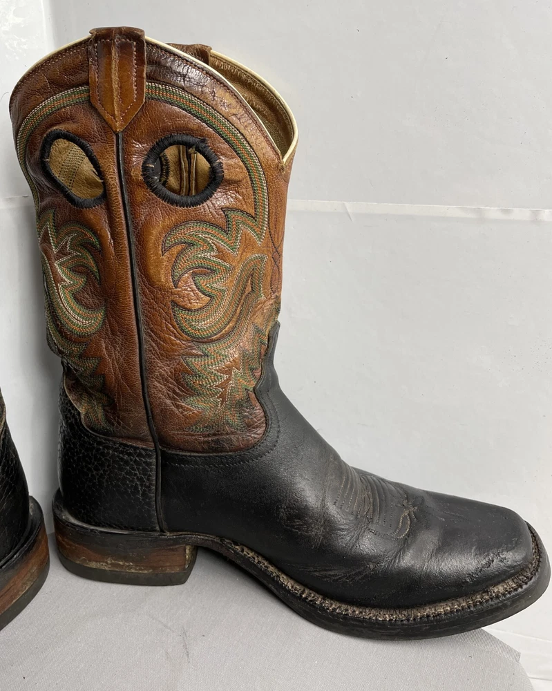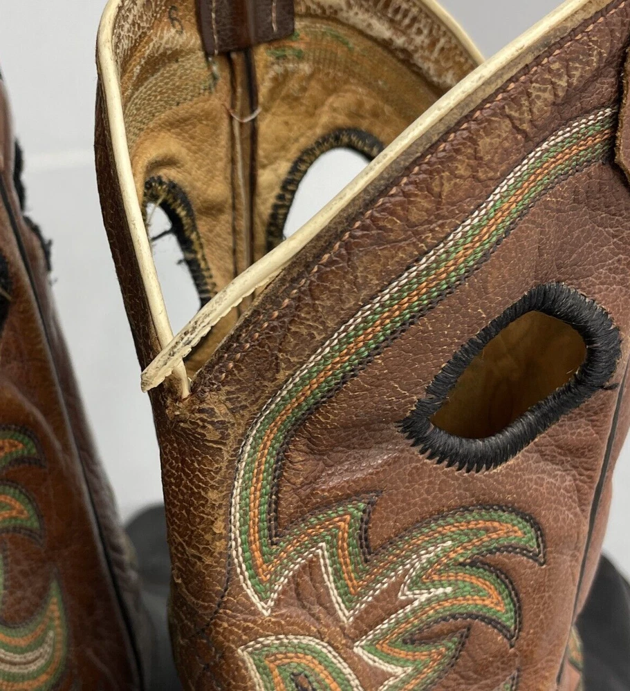 Two Tone Distressed Vintage USA Made Leather Western Work Boots Men's 7.5 D