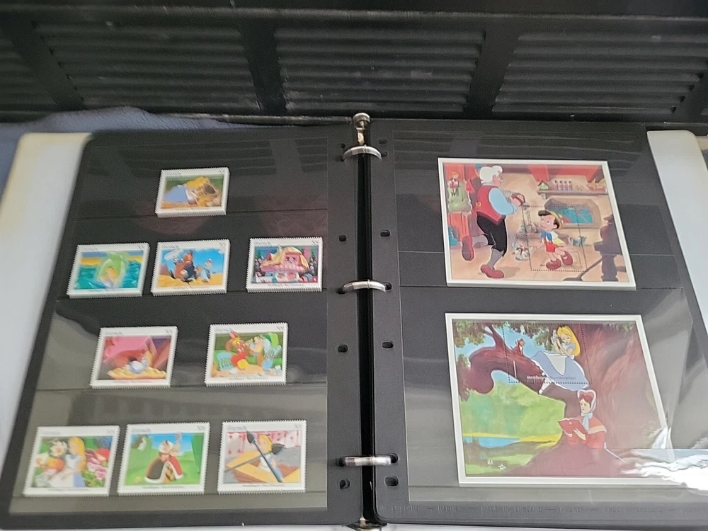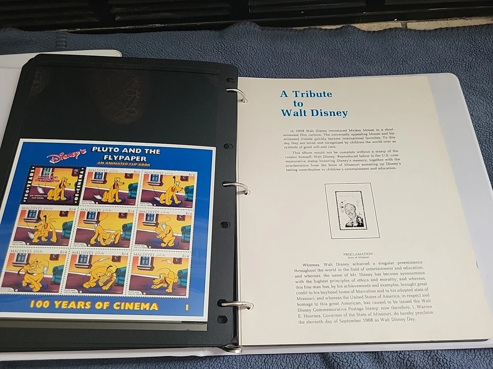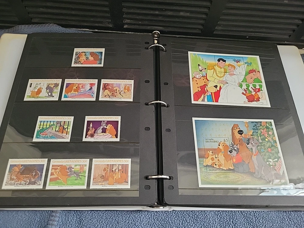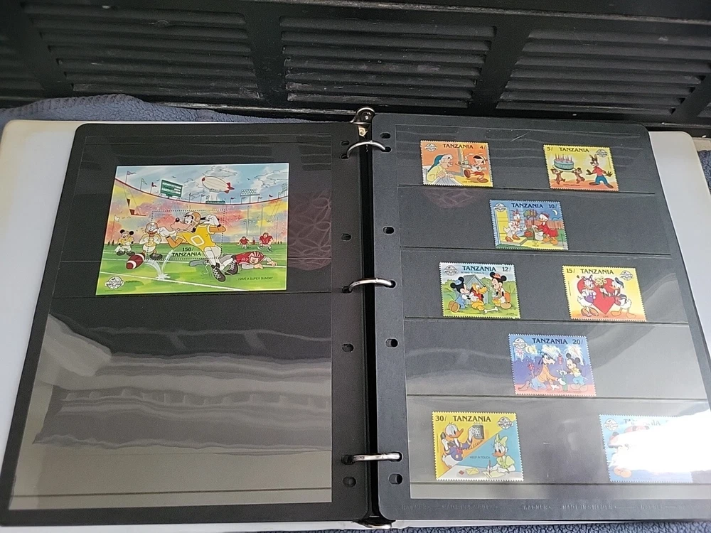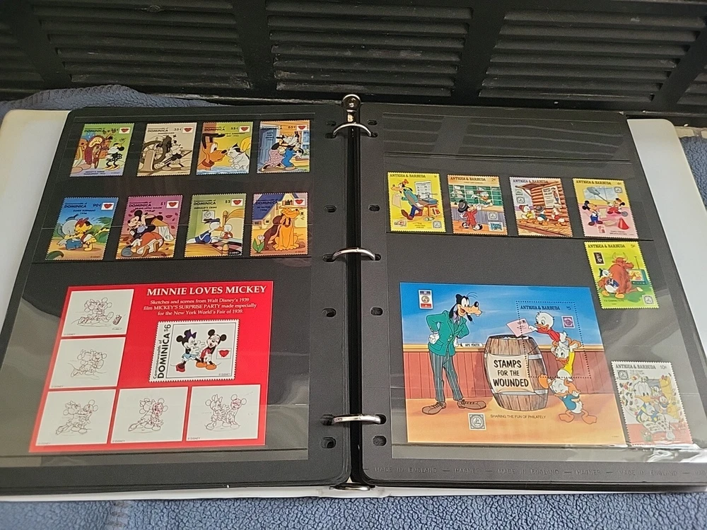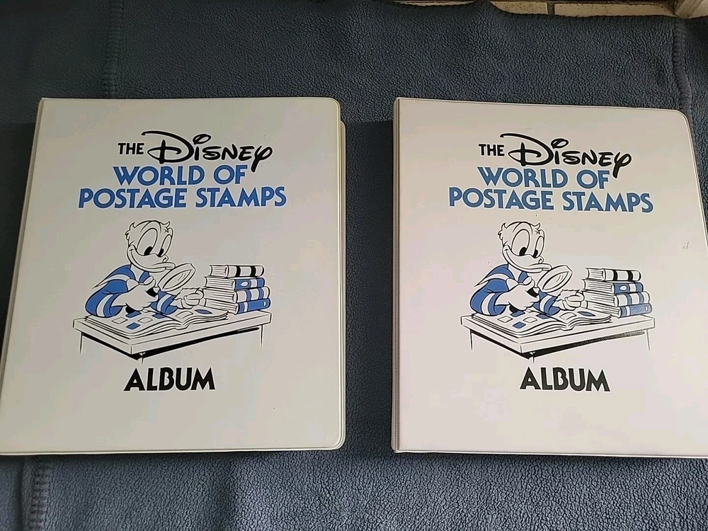 Two separate Disney stamp albums with at least 30 pages of collectible stamps. Gently used. The albums are older and have some discoloration, but in great condition. The pages are easy to turn, and there are some blank spaces for additional stamps. I could not include all of the pages for picture references due to the limit of 24. But if anyone has any questions about a particular stamp collection, please email me, and I will happily send a picture for reference if that collection is in the album. Thank you!