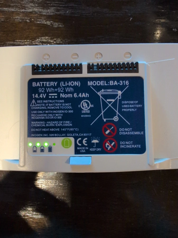 Used like new. This listing includes two (2) rechargeable Li-Ion batteries designed for the Inogen G3 and OxyGo BA-316 Oxygen Machines. The batteries have a chemical composition of Li-Ion and a size of 7.75"x3". The unit quantity is 17221349. These batteries are specifically designed for the Inigen type of machine and are perfect for those who require reliable and long-lasting power for their oxygen machine. Please refer to the compatibility chart to ensure that these batteries are suitable for your device.