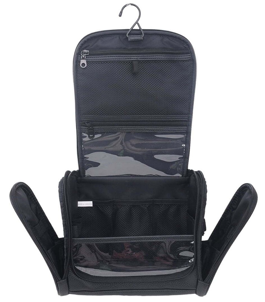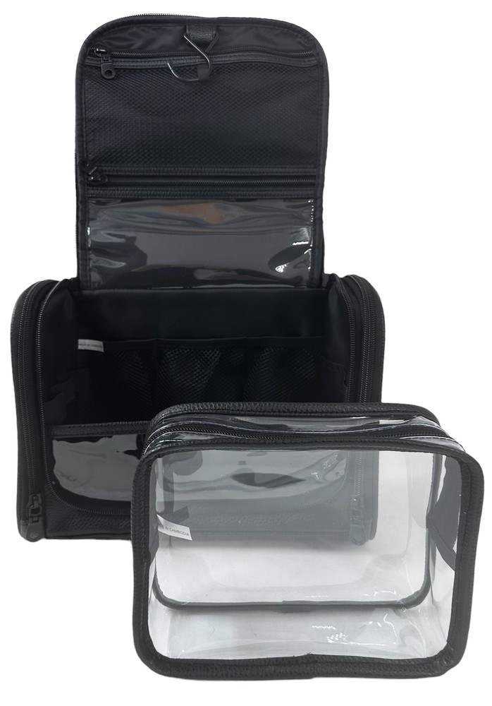 2 Piece Toiletry Bag,It can be used as a Cosmetic Makeup Bag with a Hanging Hook, a Water-resistant Dopp kit Shaving Bag for Full Sized Container, Toiletries, Shampoo, Black Large Toiletry Bag—One large main compartment can store toiletries and cosmetics. Two zipper pockets on both sides can separate wet and dry items. Two zipper pockets on the flap can store some small items. Convenient to Use—The transparent zip pockets allow you to easily find items. The top handle is easy to carry, and there is a two-way zipper closure for easy access. A metal swivel hook allows you to hang the bag anywhere, saving valuable counter space. It's perfect for use in hotels, bathrooms, or even on a camping trip. The Multifunctional Bag- allows you to have a hanging toiletry bag, shaving kit, makeup bag, and cosmetic bag all in one. It's a great choice for business trips, travel, gym, camping, home use, and more. It's also a great gift for friends.