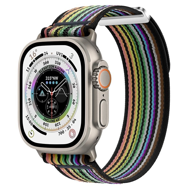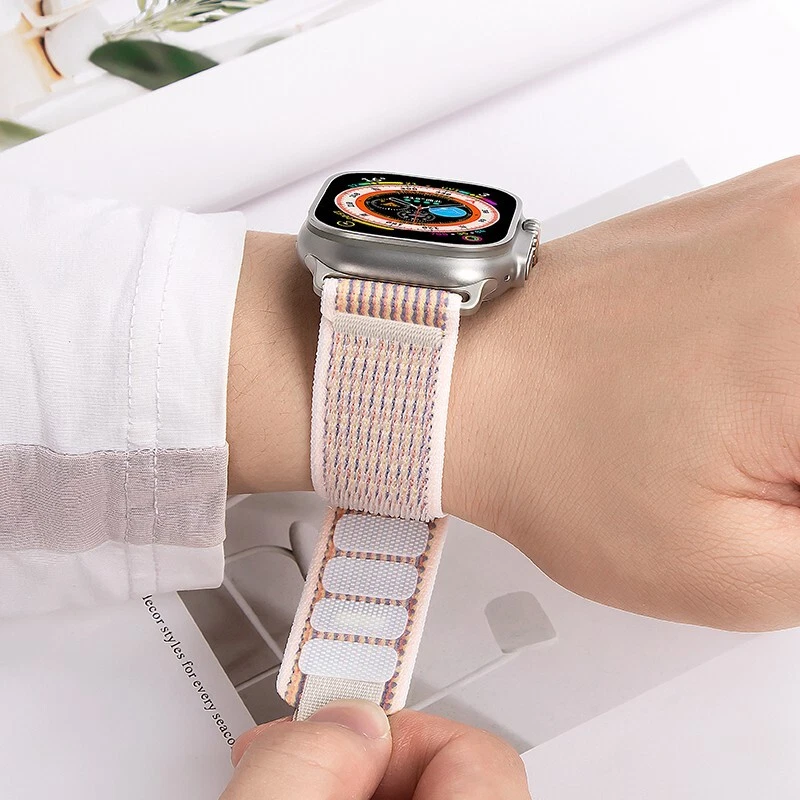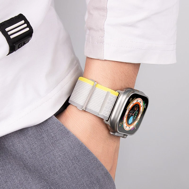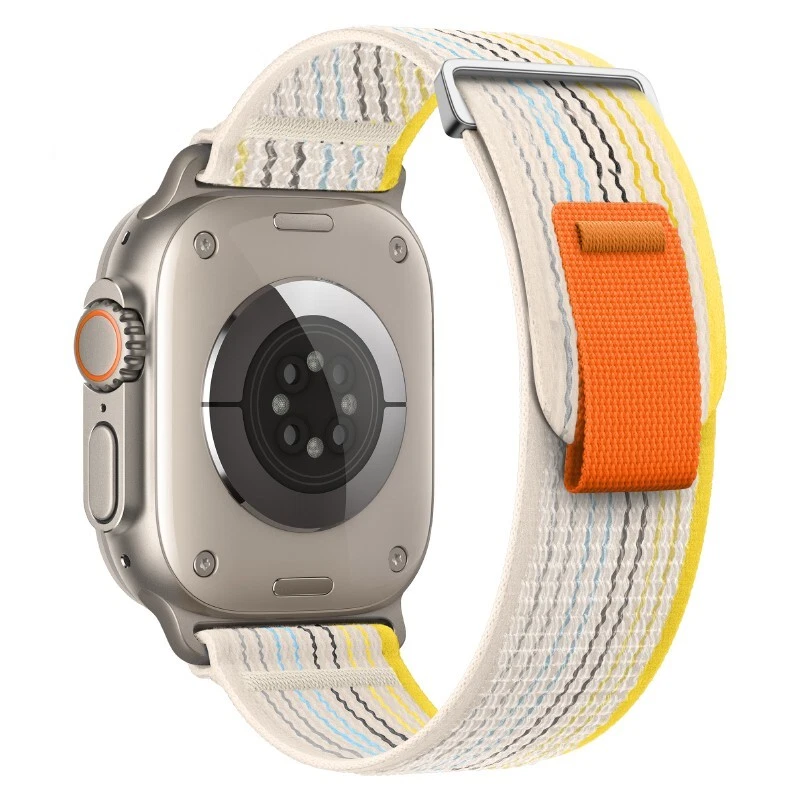 Two-section trail nylon loop strap for Apple Watch 10 9 8 42/44/46/49mm Ultra2 Features: 100% Brand new and high quality. [Premium Material ] Made of tough, durable nylon, this watch strap excels in challenging conditions. Its soft, finely woven texture, combined with enhanced elasticity, ensures remarkable comfort. The skin-facing side is tightly woven, offering a soft cushion and a premium feel. [Security & Easy to install] Durable Trail Loop Nylon wristbands comes with watch lugs on both ends, which locks onto watch interface precisely and securely. It can effectively prevent your apple watch from falling off and becoming loose. The upgraded linker on both ends locks precisely and securely on. Don't need any tools, easy and direct installation and one button removal. [For All Scenes] Suitable for many scenes, especially suitable for sports such as hike, run, outdoor Activities. Making the ultimate sports watch for athletes of all kinds required a unique approach. That?s why specialized bands for outdoor adventures, endurance training, and water sports are as meticulously crafted as the watch itself. [For Wrist Size] Suitable for 130-220mm (5.12"-8.66") wrists. Compatible With: > For Apple Watch Ultra / Ultra 2 > For Apple Watch Series 10 / Series 9 / Series 8 / Series 7 / Series 6 / Series 5 / Series 4 / Series 3 / Series 2 / Series 1 / > For Apple Watch Nike > For Apple Watch Hermes > For Apple Watch SE Package Includes: 1x Trail Loop Sport Band !!! ( PS: The Apple Watch is Not Included )