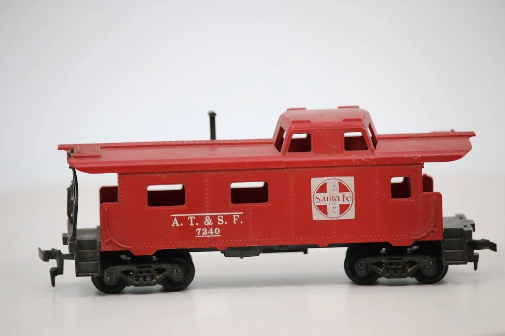 This limited edition Tyco 327-22 Santa Fe Cupola Caboose is a must-have for any model train enthusiast. With its vibrant red and white cross logo design, this HO gauge caboose is a perfect addition to your two-rail system. Made of high-quality plastic and painted with attention to detail, this caboose is ready to go and pre-built. It's recommended for ages 8 and up and has a grade of C-5 Good. This vintage piece is a replica of the early 1970s/1980s AT&SF ATSF 7240 caboose, complete with the corporate roadname Santa Fe. Weighing only 0.2 lb, this caboose is a great addition to any collection. Tyco 327-22 SANTA FE Cupola Caboose AT&SF ATSF 7240 Red White Cross Logo RTR SKU#009162 Look closely at the pictures to see further details. We ships USPS PLEASE see photos for detailed condition!! AC PLEASE LOOK AT THE PHOTOS CAREFULLY BEFORE PURCHASING!! If you are purchasing more than one item from us and would like combined shipping, PLEASE request an adjusted invoice from us while still in the cart and BEFORE paying. eBay does not usually calculate combined shipping accurately and you might get overcharged. Please be aware that when we photograph items, we use lighting that will show the details well. Although we try to present the product as accurately as possible, the lighting may affect the overall look of the item by appearing lighter/darker or possibly a different hue than the actual item. Depending on the type of lighting you have in your home, there may be some differences between the photos and the actual item. If this is a concern of yours, please feel free to request additional photos made in natural lighting or ask for a more detailed description of the item PRIOR TO PURCHASE! PLEASE NOTE: We greatly appreciate your interest in our item for sale. We look forward to a pleasant, quick and satisfying transaction for everybody, so please note the following information before bidding. Thank you! ITEM DESCRIPTIONS: * We will try to describe items well and provide plenty of photos. Please review these carefully before bidding or purchasing. * Only the items pictured and described are what you will receive when purchased. * We will occasionally offer an item clearly marked "AS-IS". This means that we are not sure if it works because we are unable to test it for whatever reason. We will offer these at a discounted price then a similar "working" item. It is possible that these items will work fine, but it also is possible that these items are more useful for their parts. Please only bid on or purchase these items if you are well aware of this, as we will only provide refunds of actual item price (no shipping cost refunds) for these items. * If you have any questions that aren't addressed by the descriptions or photos, please feel free to ask before you bid. * May need detailed cleaning SHIPPING: * We usually do not offer shipping to international addresses, but ARE WILLING TO TAKE CONSIDERATIONS. * We try to pack items as carefully as possible, but damage may occur during shipping. If you receive an item that was damaged in shipping, please contact us and we will work with you to resolve the problem. * We will combine shipping costs for all items the same buyer purchases from us within 2 days. Please wait to pay for items until you're done shopping with us. Please contact us if you're expecting to buy more items from us, or to have us adjust the shipping costs. * We will usually ship items out within 24 hours of payment being received Sunday through Friday at noon. We will notify the buyer if there will be a delay in shipping for some reason. Please allow additional time for holidays and weekends when the post office is closed. If payment is received after noon (EST) on Friday, the item might not be shipped until the following Monday. * We do try to recycle shipping materials as much as possible. RETURNS: We abide by eBay's Money Back Guarantee. We definitely want our customers to be happy with their purchase! You may return an item within 30 days of receiving it with the following guidelines: * If the item is defective or damaged (unless we clearly marked the listing "AS-IS"), the buyer will receive a full refund after the buyer returns it and it is received by us. Customers who falsely claim their item is defective, damaged, or not as described in order to receive a full refund and free return shipping will be permanently blocked from making future purchases from us. * If the item is as described (including "AS-IS" items) and the buyer decides for any other reason than defective/damaged to return it, only the actual price of the item will be refunded once it has been returned and it is received by us. The buyer will be asked to pay all original and return shipping charges. This includes all reasons other than defective/damaged, including wrong size, wrong type, changed mind, etc. All "AS-IS" items will fall into this category of return. Please make sure the item is what you want before purchasing it. * Please contact us before initiating a refund request. FEEDBACK: We always leave feedback at the end of transaction. We consider the transaction to be over when we receive feedback from the buyer confirming the item arrived satisfactorily. If you are unsatisfied with your purchase please contact us before leaving neutral or negative feedback. WE APPRECIATE POSITIVE FEEDBACK IF YOU ARE SATISFIED WITH YOUR PURCHASE! THANK YOU FOR YOUR INTEREST IN THIS ITEM!