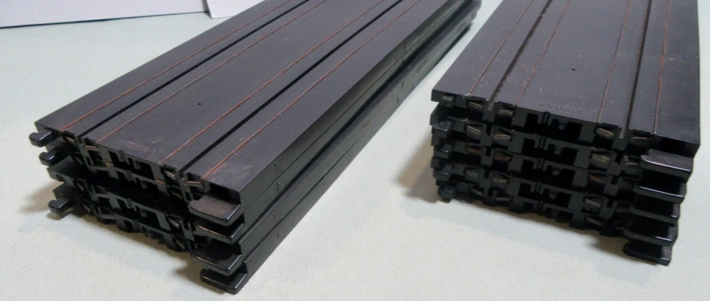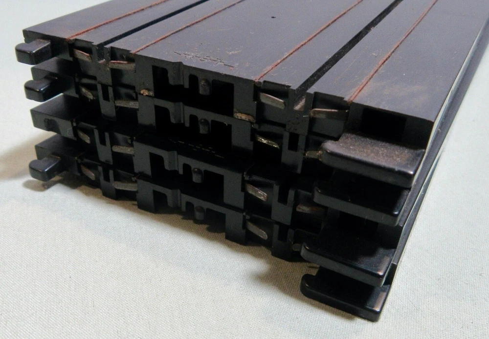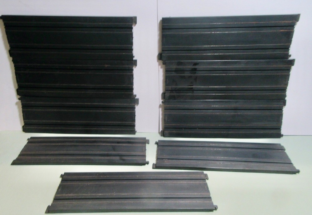 Explore the world of vintage slot car racing with this lot of nine Tyco 9" straight tracks. These classic tracks, model #5748, are an original piece from the 1970s, offering a touch of nostalgia to your collection. Proudly manufactured in the United States, they reflect the quality and durability that Tyco is known for. Perfect for enthusiasts and collectors aged 8-11 years, each track piece is a testament to the era's engineering. Add a authentic touch to your racing setup with these time-tested tracks and create lasting memories as you relive the golden age of slot car racing. Seller's comments: All tracks have the larger connecting tab, 3 tracks have broken smaller tabs on one end and 2 have smaller broken tabs on the other end. No cracks or breaks in the tracks were observed.