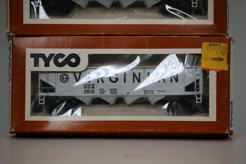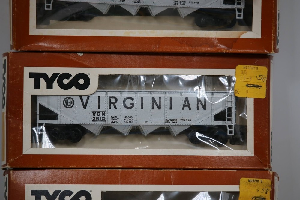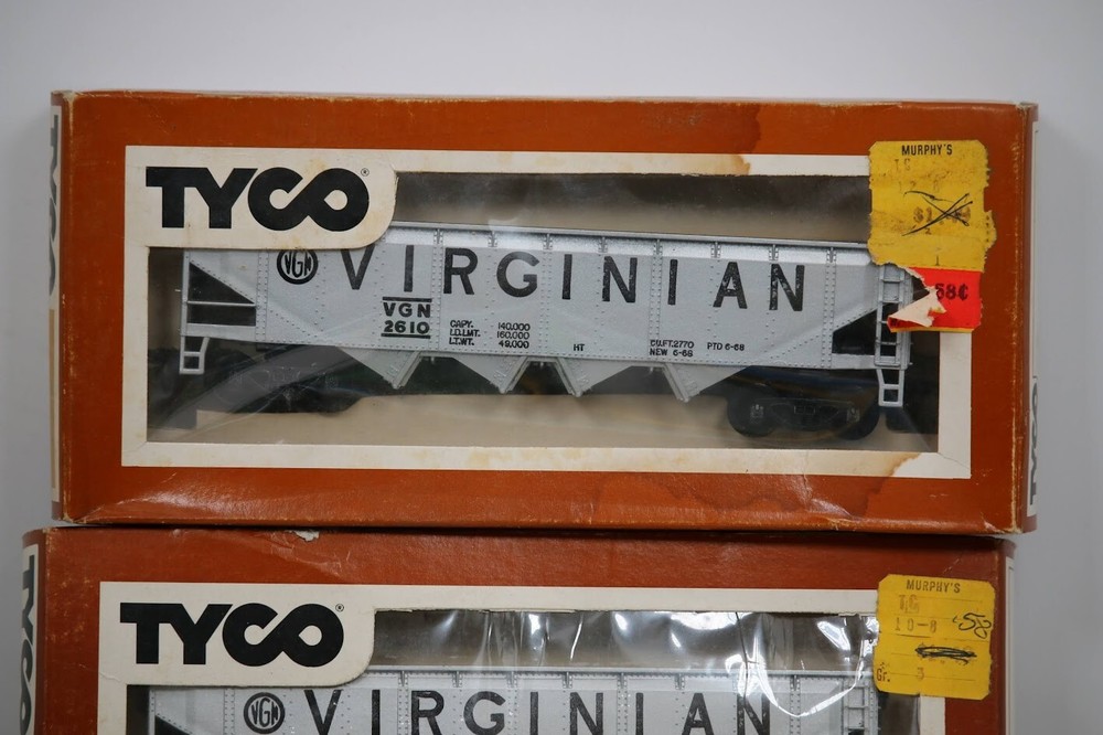 Lot Of 3 Tyco Virginian 4-Bay Open Hopper HO Scale Silver Model Freight Train 1:87 Gauge Look closely at the pictures to see further details. We ships USPS PLEASE see photos for detailed condition!! ACPLEASE LOOK AT THE PHOTOS CAREFULLY BEFORE PURCHASING!! If you are purchasing more than one item from us and would like combined shipping, PLEASE request an adjusted invoice from us while still in the cart and BEFORE paying. eBay does not usually calculate combined shipping accurately and you might get overcharged. Please be aware that when we photograph items, we use lighting that will show the details well. Although we try to present the product as accurately as possible, the lighting may affect the overall look of the item by appearing lighter/darker or possibly a different hue than the actual item. Depending on the type of lighting you have in your home, there may be some differences between the photos and the actual item. If this is a concern of yours, please feel free to request additional photos made in natural lighting or ask for a more detailed description of the item PRIOR TO PURCHASE! PLEASE NOTE:We greatly appreciate your interest in our item for sale. We look forward to a pleasant, quick and satisfying transaction for everybody, so please note the following information before bidding. Thank you! ITEM DESCRIPTIONS: * We will try to describe items well and provide plenty of photos. Please review these carefully before bidding or purchasing. * Only the items pictured and described are what you will receive when purchased. * We will occasionally offer an item clearly marked "AS-IS". This means that we are not sure if it works because we are unable to test it for whatever reason. We will offer these at a discounted price then a similar "working" item. It is possible that these items will work fine, but it also is possible that these items are more useful for their parts. Please only bid on or purchase these items if you are well aware of this, as we will only provide refunds of actual item price (no shipping cost refunds) for these items. * If you have any questions that aren't addressed by the descriptions or photos, please feel free to ask before you bid. * May need detailed cleaning SHIPPING: * We usually do not offer shipping to international addresses, but ARE WILLING TO TAKE CONSIDERATIONS. * We try to pack items as carefully as possible, but damage may occur during shipping. If you receive an item that was damaged in shipping, please contact us and we will work with you to resolve the problem. * We will combine shipping costs for all items the same buyer purchases from us within 2 days. Please wait to pay for items until you're done shopping with us. Please contact us if you're expecting to buy more items from us, or to have us adjust the shipping costs. * We will usually ship items out within 24 hours of payment being received Sunday through Friday at noon. We will notify the buyer if there will be a delay in shipping for some reason. Please allow additional time for holidays and weekends when the post office is closed. If payment is received after noon (EST) on Friday, the item might not be shipped until the following Monday. * We do try to recycle shipping materials as much as possible. RETURNS: We abide by eBay's Money Back Guarantee. We definitely want our customers to be happy with their purchase! You may return an item within 30 days of receiving it with the following guidelines: * If the item is defective or damaged (unless we clearly marked the listing "AS-IS"), the buyer will receive a full refund after the buyer returns it and it is received by us. Customers who falsely claim their item is defective, damaged, or not as described in order to receive a full refund and free return shipping will be permanently blocked from making future purchases from us. * If the item is as described (including "AS-IS" items) and the buyer decides for any other reason than defective/damaged to return it, only the actual price of the item will be refunded once it has been returned and it is received by us. The buyer will be asked to pay all original and return shipping charges. This includes all reasons other than defective/damaged, including wrong size, wrong type, changed mind, etc. All "AS-IS" items will fall into this category of return. Please make sure the item is what you want before purchasing it. * Please contact us before initiating a refund request. FEEDBACK:We always leave feedback at the end of transaction. We consider the transaction to be over when we receive feedback from the buyer confirming the item arrived satisfactorily. If you are unsatisfied with your purchase please contact us before leaving neutral or negative feedback. WE APPRECIATE POSITIVE FEEDBACK IF YOU ARE SATISFIED WITH YOUR PURCHASE! THANK YOU FOR YOUR INTEREST IN THIS ITEM!