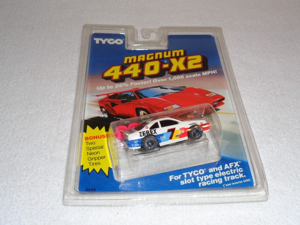 Tyco Magnum 440-X2 #7 Zerex Spark Plugs with Two Special Neon Gripper Tires #8938 1991 NEW MOC Item may have shelf wear to edges and corners. A store sticker may have been removed. Please see photos and ask any questions you may have.