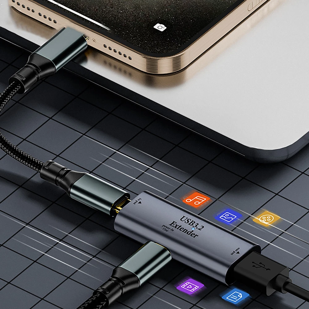 This Type C extender is a total game-changer! The blue power light looks so cool, and it actually maintains fast speeds even across long distances. My keyboard and camera work flawlessly now without any lag. The build quality feels premium and it's surprisingly versatile for all my devices. Absolutely love it!