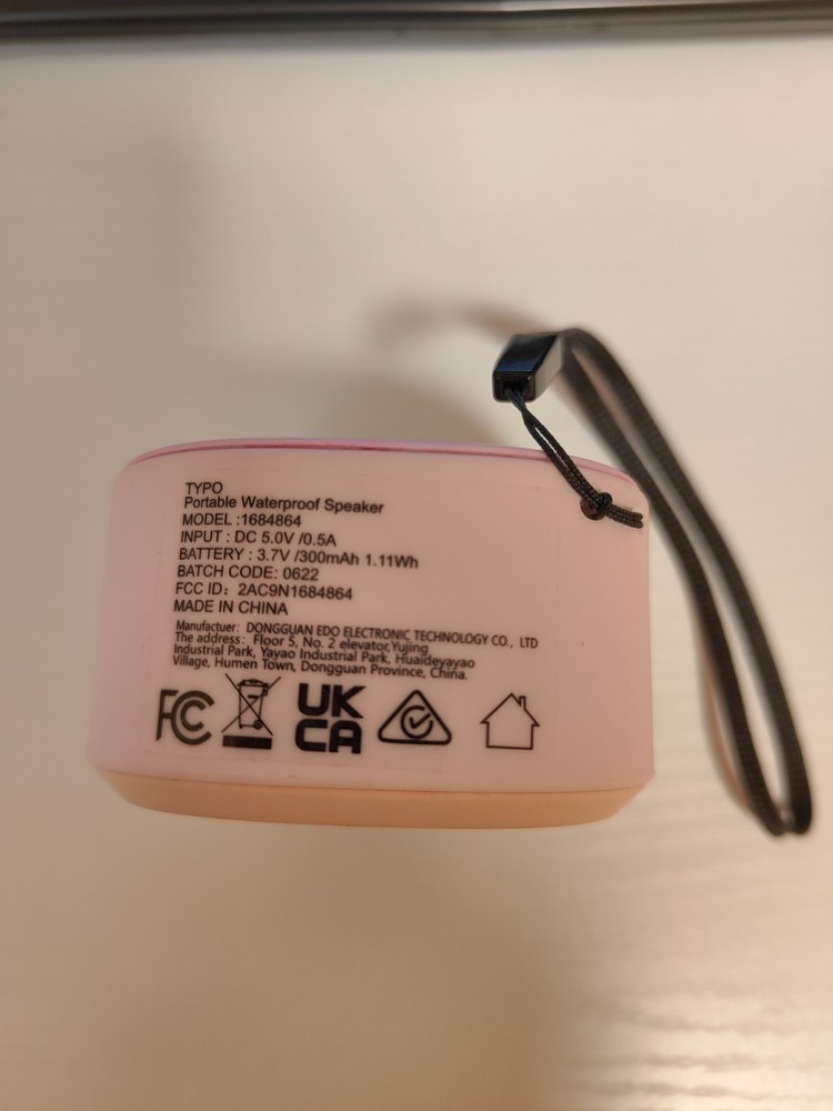 Typo Portable Waterproof Bluetooth Speaker – Pink Ombre, Near-Mint Condition! Bring your music anywhere with this Typo Portable IPX4 Waterproof Speaker —a stylish, compact, and durable speaker that delivers surprisingly powerful sound in a small package. With 3W output , Bluetooth connectivity , and USB support , it’s perfect for streaming your favorite playlists on the go. This speaker comes in a stunning ombre pink color and is built with IPX4 waterproofing , making it ideal for outdoor adventures, beach days, or just relaxing at home. Note: this unit was only used once or twice , and never exposed to water , so it’s in near-mint condition . Includes: Original charging cable Built-in Bluetooth for easy wireless pairing Compact and portable design that fits anywhere Whether you're lounging by the pool or hanging out indoors, this cute and capable speaker is ready to bring the vibes.