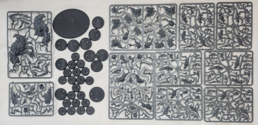 Our family supports a network of small businesses by purchasing from them instead of operating a game store ourselves. When you purchase from us you support these small game stores. For complete protection I thoroughly wrap all orders in extra bubble wrap and package carefully in bubble mailers. I ship daily so you can be assured of the speedy arrival of your order. This listing is for: Complete Tyranids Combat Patrol from 40k Ultimate Edition boxed set. - 1x Winged Tyranid Prime - 1x Psychophage - 3x Von Ryan's Leapers - 5x Barbgaunts - 20x Termagants, armed with fleshborers - 2x Ripper Swarms I include assembly instructions whenever possible but please leave a note with your order (or message me) if you would like a PDF of the assembly guide. All miniatures are new on the sprue, unpainted and assembly required. All other items such as books, cards, tokens, boards, maps, etc are always brand new in mint condition. Please message me if you have any questions, I am always happy to help. Upon arrival or your order, if you have any concerns with your items please message me immediately and I will immediately address the situation. Thank you very much!
