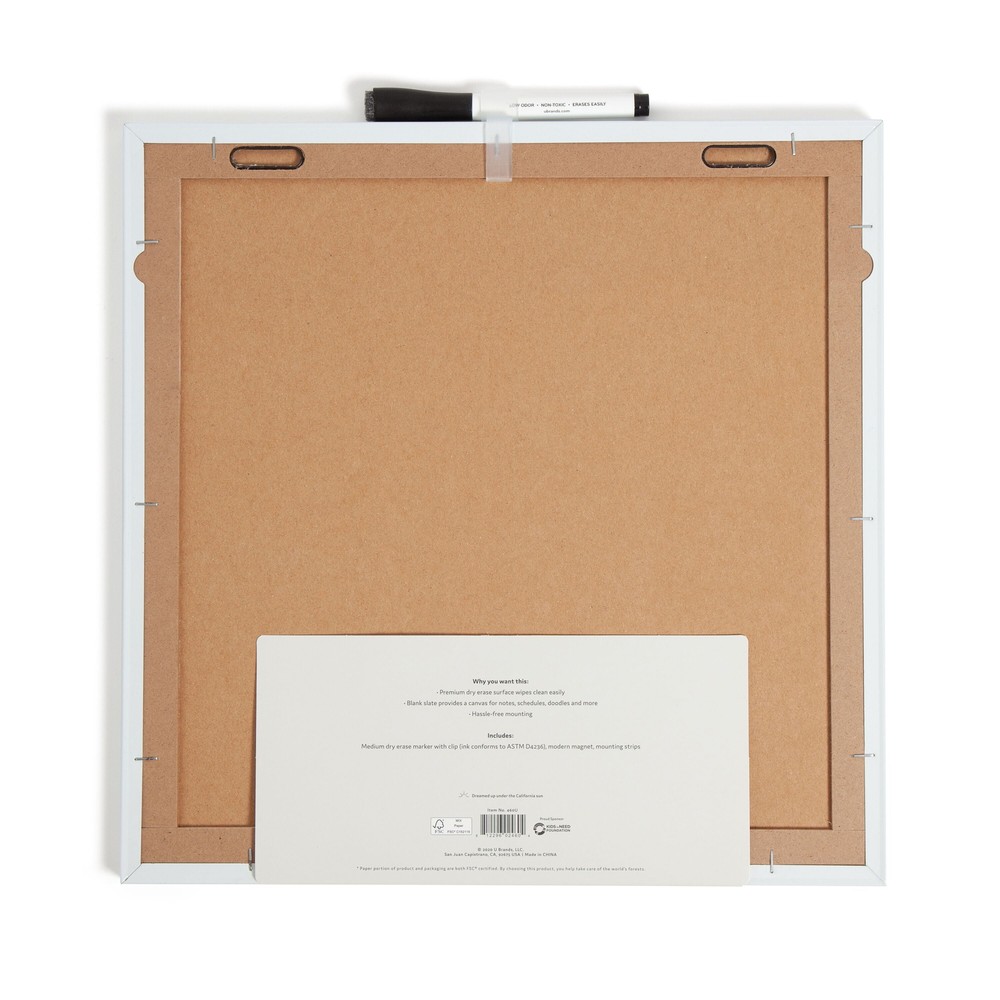Keep your plans and important reminders in sight with this magnetic dry erase tile board by U Brands. Ideal for anyone on-the-go to layout upcoming appointments, deadlines, term papers, meal plans and more. The premium dry erase surface requires little care to keep clean; simply use any felt or microfiber eraser to wipe the canvas clean to reuse. This frameless whiteboard adds the perfect touch of functionality to your home, office, classroom or kitchen. Features a medium point black ink dry erase marker with built-in felt eraser cap; one (1) marker clip and one (1) U Brands magnet to get you started. Hassle-free mounting hardware and instructions included. On Jun 24, 2025 at 20:16:35 PDT, seller added the following information: