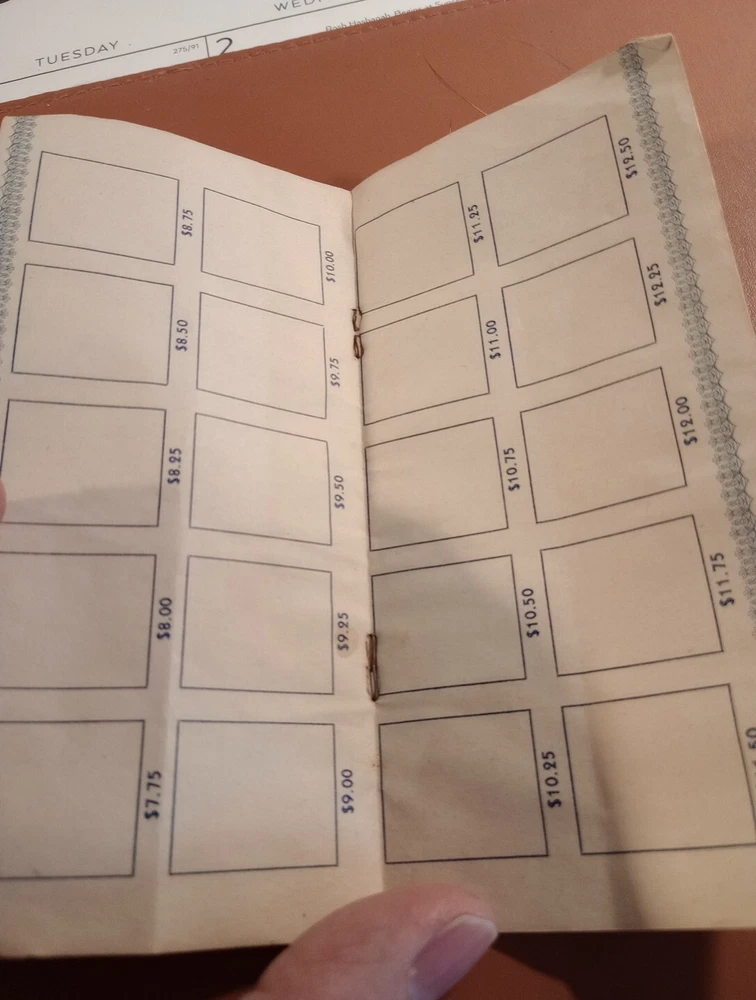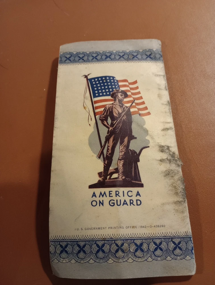25 cent defense stamp album used for United States defense savings bonds with 6/ 25c stamps in booklet