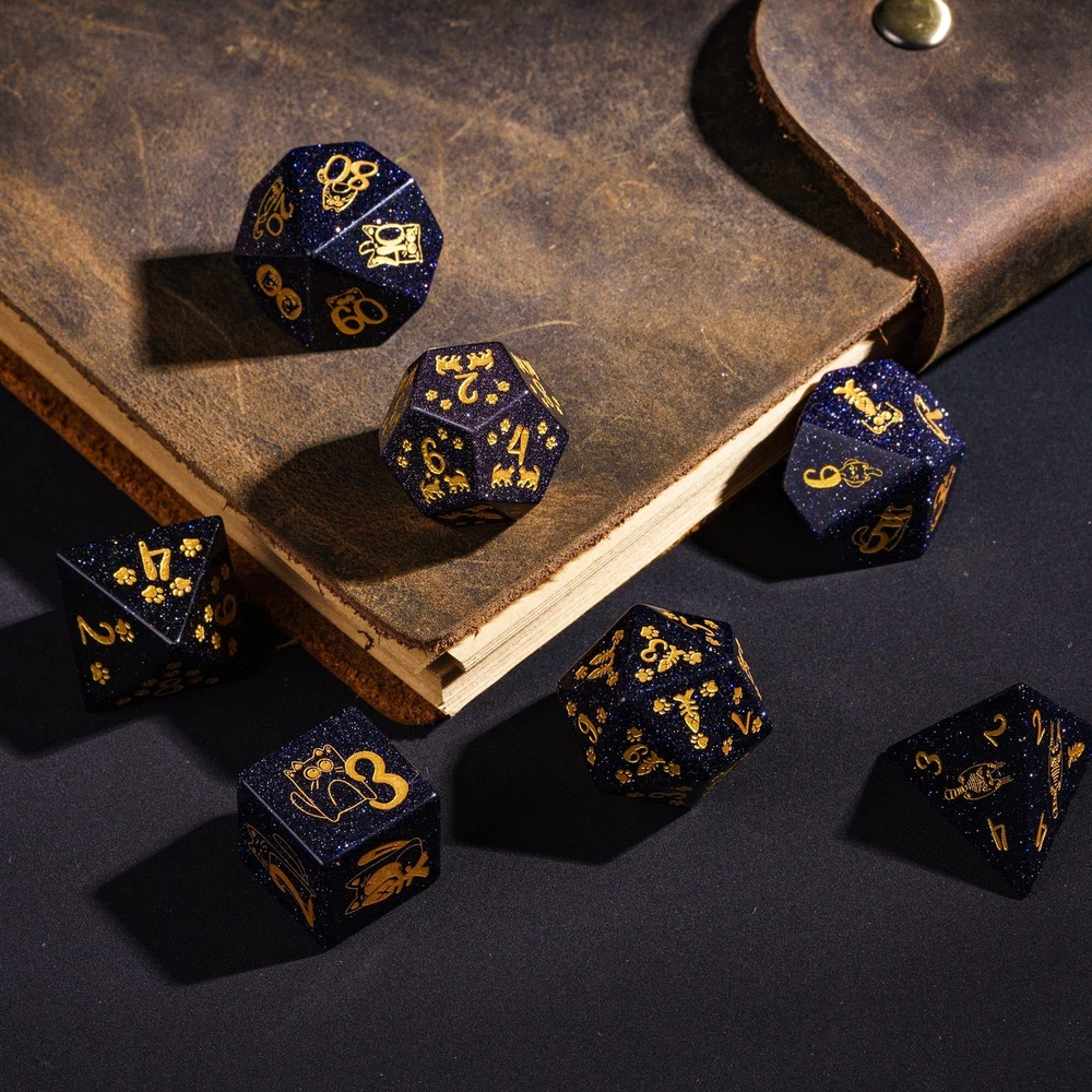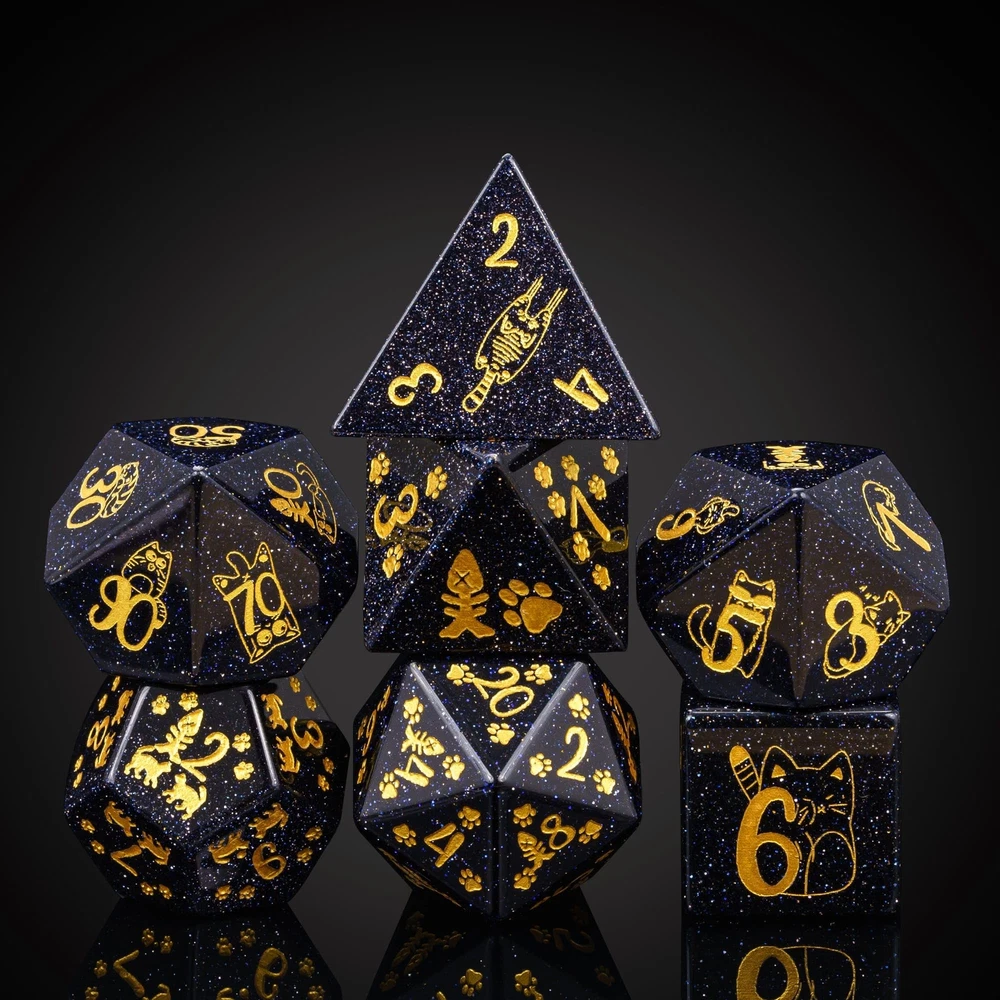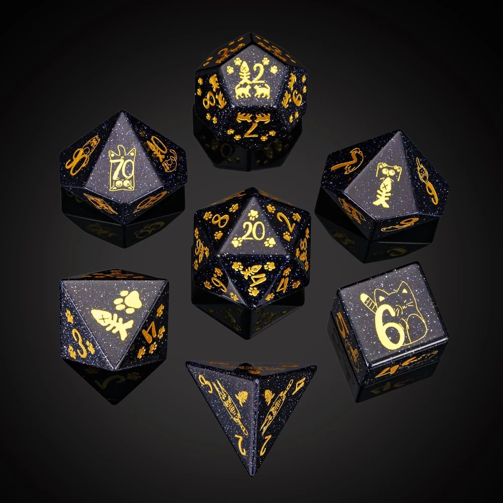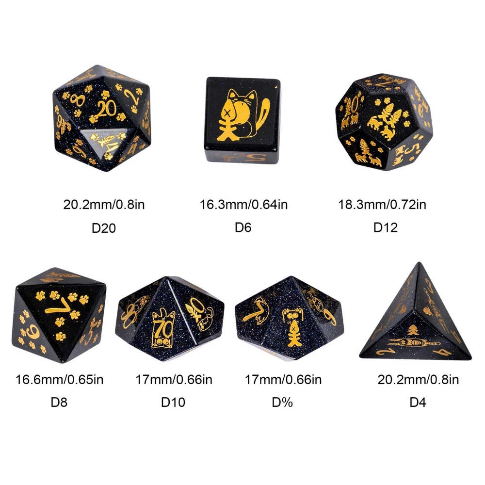 UDIXI Gemstone DND Dice Set Blue Sandstone Dice with Cute Cat Pattern, Stone Dice for Dungeons and Dragons Tabletop Game Complete Dice Set: One set gemstone dice total 7 pcs including D4, D6, D8, D10, D12, D20 and D%. Upgraded Gemstone Dice: Unlike the monotonous unpatterned dice set, these dice are engraved with beautifully detailed patterns to make them more unique. Material: The dice are cut and polished using pure blue sandstone and engraved with a unique cat pattern. Notice: For the best protection of your d&d dice, we recommend using them with a dice tray or dice pad. This will help keep them in pristine condition and make them a cherished part of your collection. Hassle-Free Warranty: All our dice set are hand packaged and inspected to ensure you receive the best of the best. Any issue, just contact us. We are always ready to help you. Shipping We offer FREE shipping on all orders! We use a selection of shipping services such as UPS, FedEx, USPS etc. We only ship to the lower 48 states, no APO/FPO addresses or PO Boxes allowed. Local pickups and combined shipping options are not provided at this time. Return You can return a product for up to 30 days from the date you purchased it. Any product you return must be in the same condition you received it and in the original packaging. Please keep the receipt. Payment We accept payment by any of the following methods: PayPal Please pay as soon as possible after winning an auction, as that will allow us to post your item to you sooner! Feedback Customer satisfaction is very important to us. If you have any problem with your order, please contact us and we will do our best to make you satisfied. Contact Us If you have any queries, please contact us via ebay. We usually respond within 24 hours on weekdays. Please visit our eBay store to check out other items for sale! Thank you for shopping at our store.