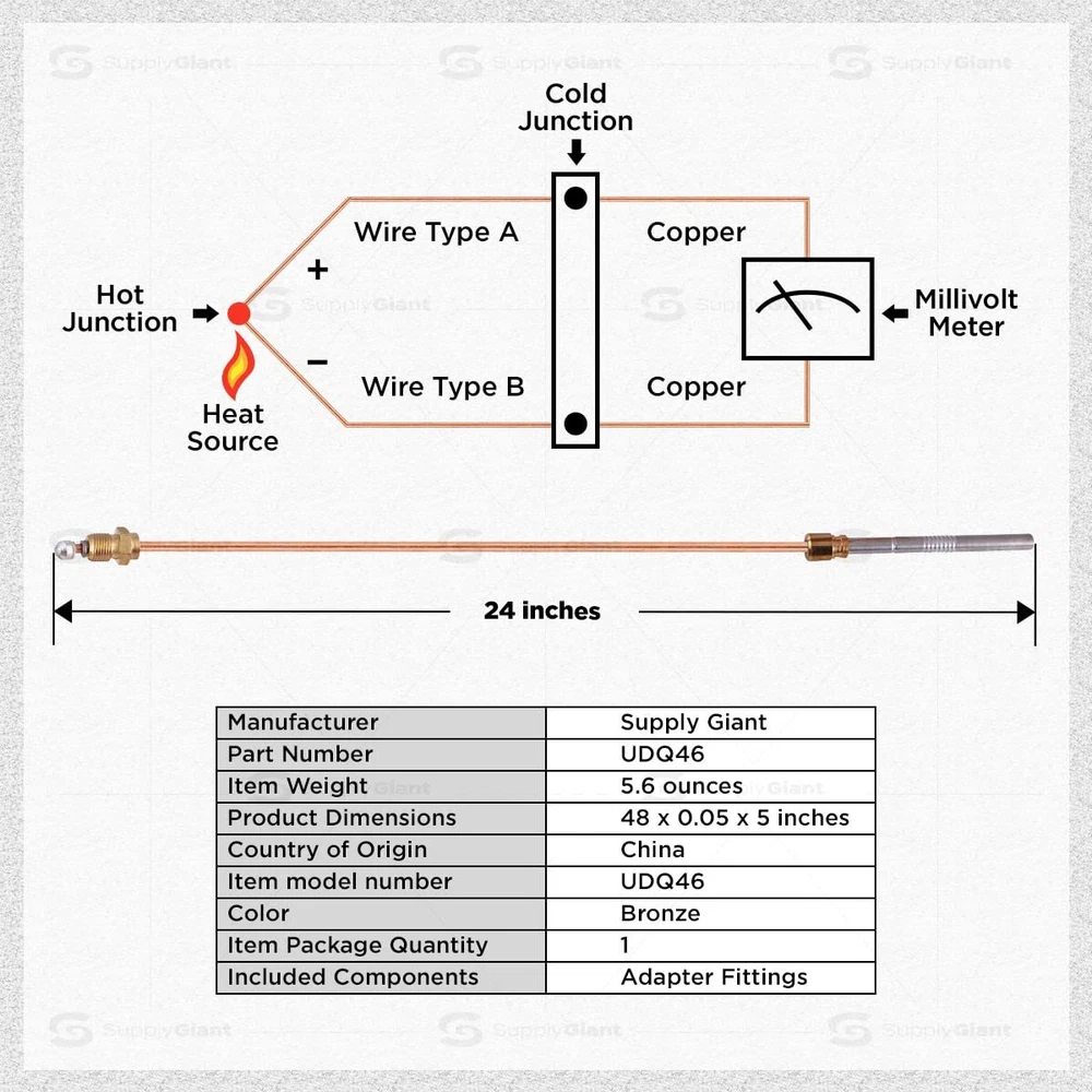 UDQ46 24-Inch Universal Thermocouple for Gas Furnaces, Boilers, and Water Hea...
