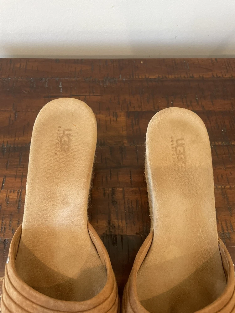 UGG 8.5 Sandal Espadrille Wedge Eirene Brown Slides Suede