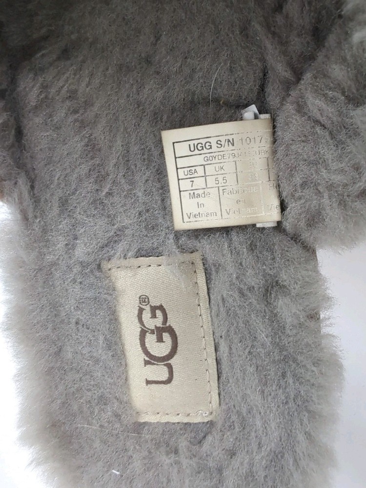 UK Shoe Size: 5.5 Handmade: No Toe Shape: Open Toe Customized: No Country of Origin: Vietnam Type: Slipper Department: Women Fabric Type: Shearling Vintage: No Theme: Australia, HOUSE SHOES Season: Fall, Spring, Summer Modified Item: No Pattern: Solid Model: UGG ABELA Closure: Slip On Style: Slide Outsole Material: Rubber Brand: UGG Shoe Width: Medium (B, M) Seller Notes: “PRE OWNED - NICE OVERALL CONDITION - FUR ON INSOLE AREAS SHOWS A BIT OF WEAR - PLEASE SEE PICS” MPN: Does Not Apply Features: Comfort Heel Height: Flat (Under 1 in) US Shoe Size: 7 Upper Material: Fur Product Line: Ugg Classic Color: Gray Lining Material: Sheepskin Personalize: No EU Shoe Size: 38 Occasion: Casual