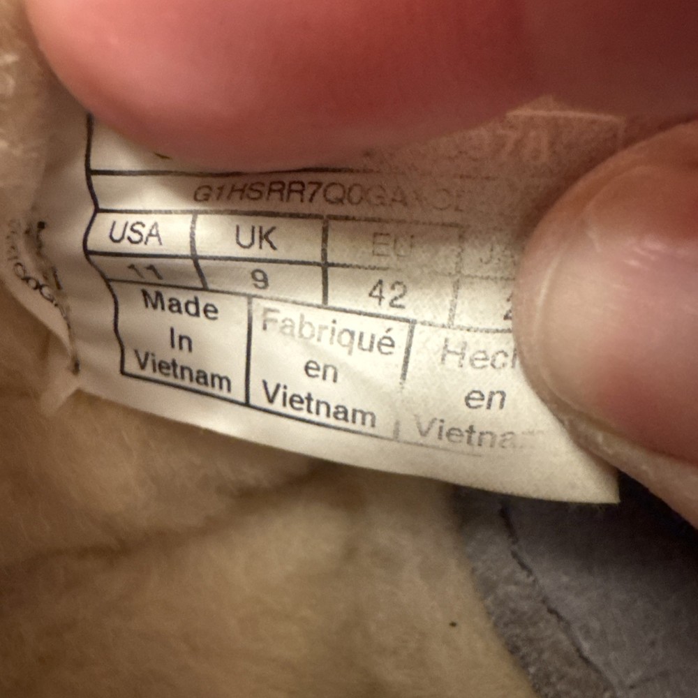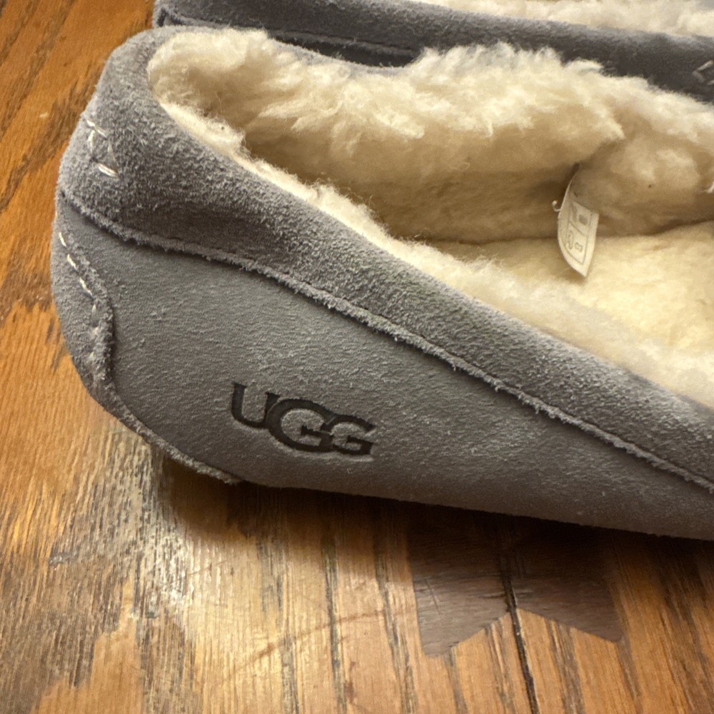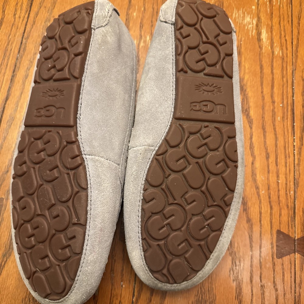 The UGG ANSLEY Women’s Suede Moccasin Slippers in Light-Gray, Size 11, are a stylish and comfortable option for women looking for a versatile slipper. Made with high-quality suede and featuring a sheepskin lining and shearling fabric type, these slippers provide warmth and cushioning for ultimate comfort. The flat heel and medium width make them perfect for casual wear or travel during the winter and fall seasons. The classic moccasin style with logo accents adds a touch of sophistication to these cozy slippers from UGG Australia.