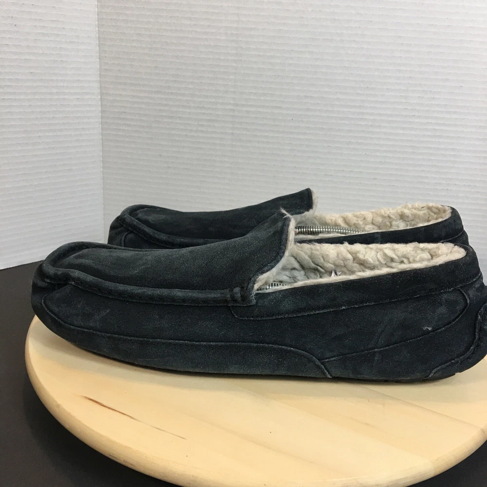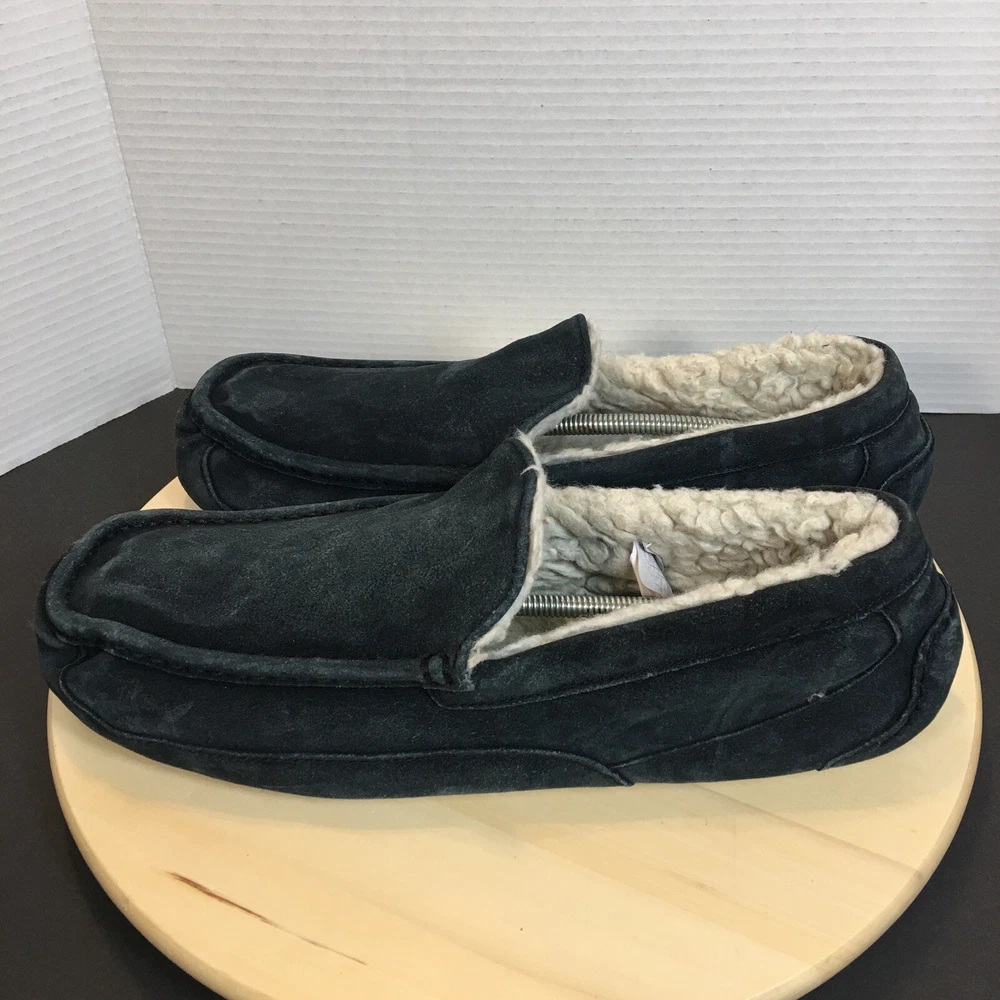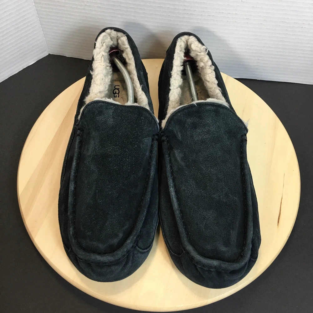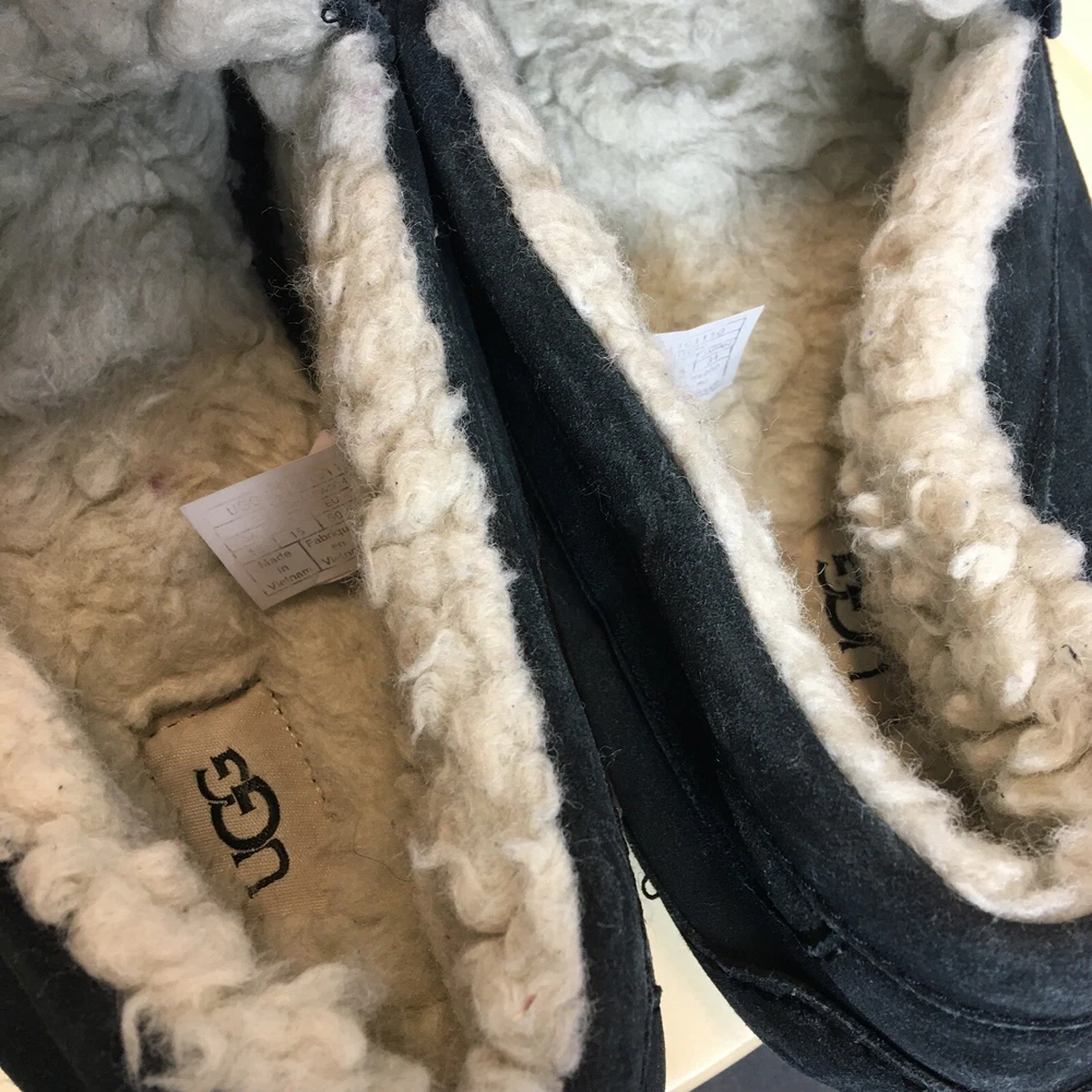 UGG Ascot Men's Slippers Shoes Size 16 Sheepskin Lined Suede Black Tbo#024