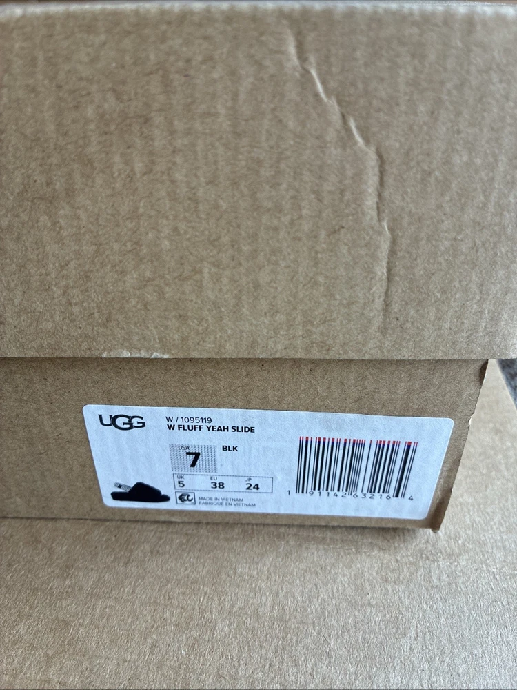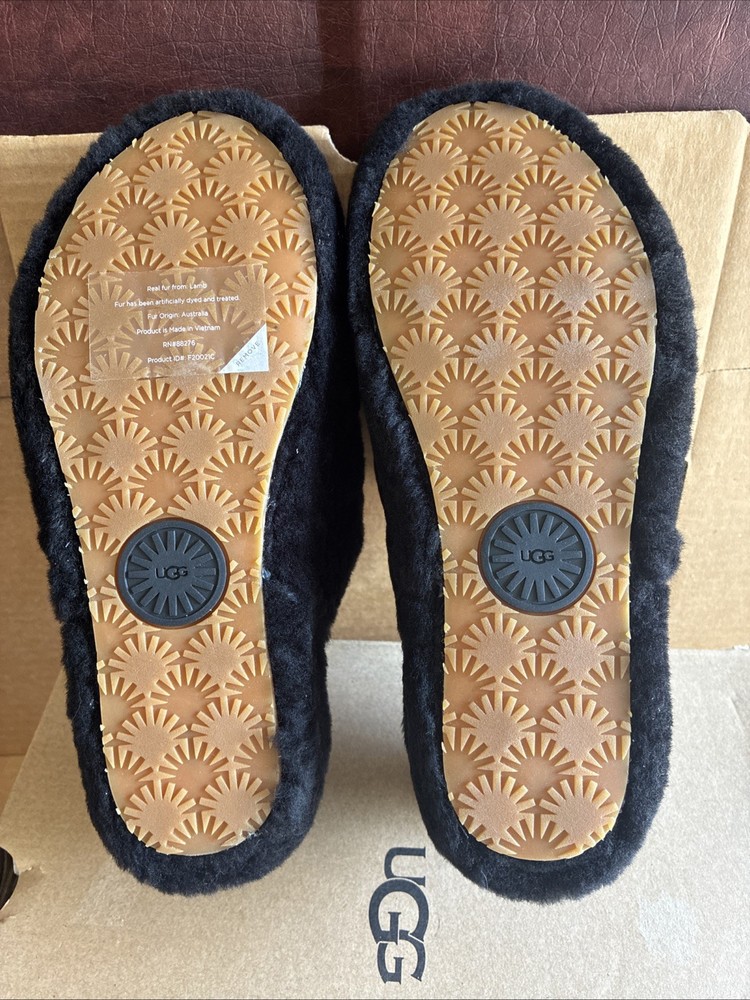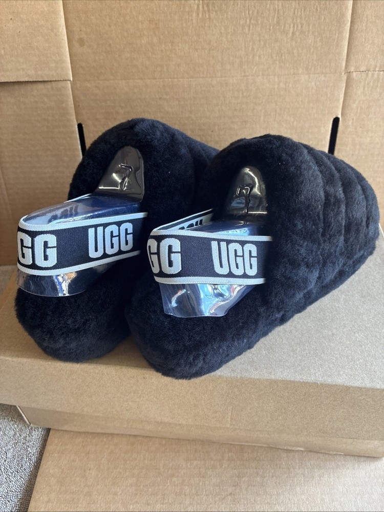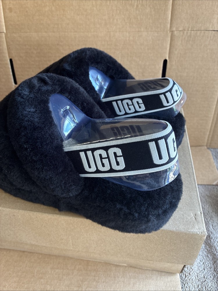 UGG Australia Fluff Yeah Women's Slide Slipper, Size 8 Black. Condition is Pre-owned - Good. Shipped with USPS Ground Advantage.