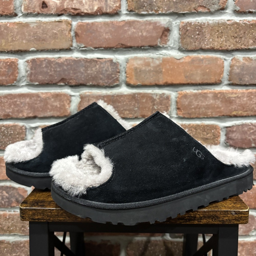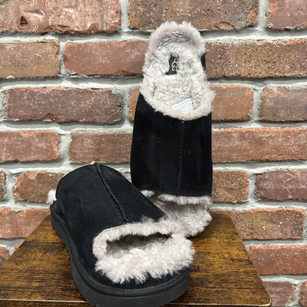 UGG BLACK CLASSIC SHEEPSKIN GREENPORT SLIDE SLIPPERS SHOES WOMEN SIZE US 10