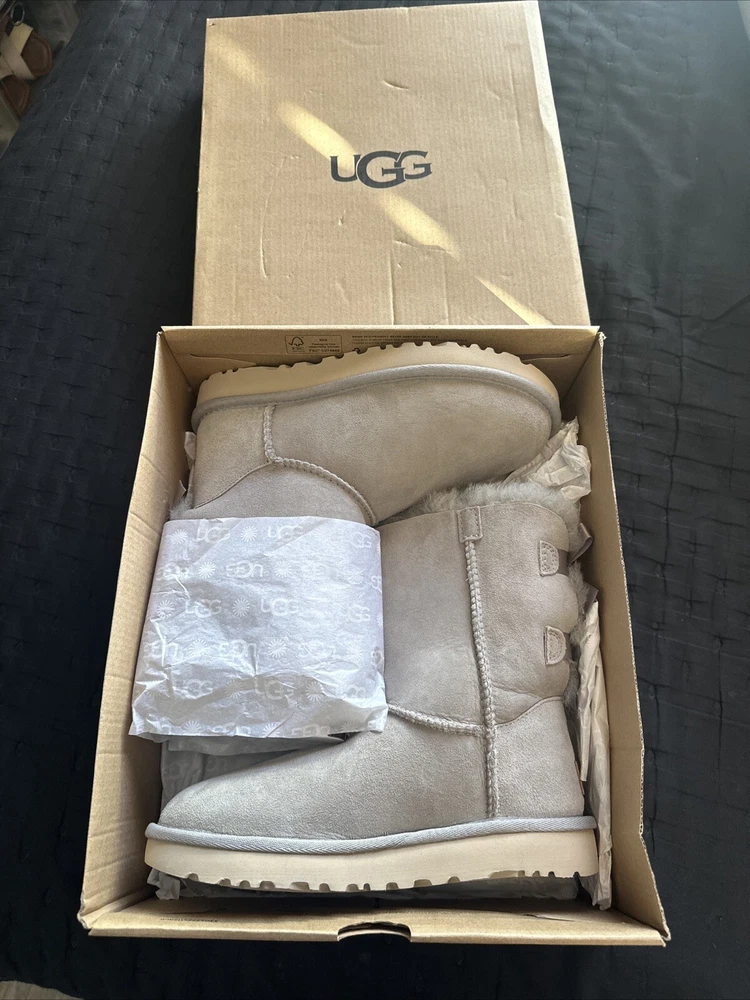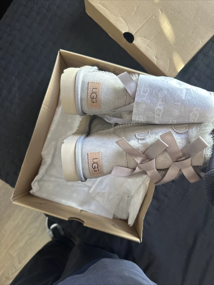 Lining Material: Sheepskin UK Shoe Size: 4.5 Toe Shape: Round Toe Closure: Pull On Color: Gray Department: Women US Shoe Size: 5 Pattern: Solid Model: UGG Bailey Bow II Calf Width: Medium Type: Boot Shoe Width: M Brand: UGG Character: Boots Style: Bootie Occasion: Casual Season: Winter Shoe Shaft Style: Mid-Calf MPN: 1016225 Product Line: UGG Australia Bailey AU Shoe Size: 4.5 Platform Height: 2 in Theme: Classic, Australia Upper Material: Suede Heel Style: Flat Accents: Bow Features: Comfort, Water Resistant