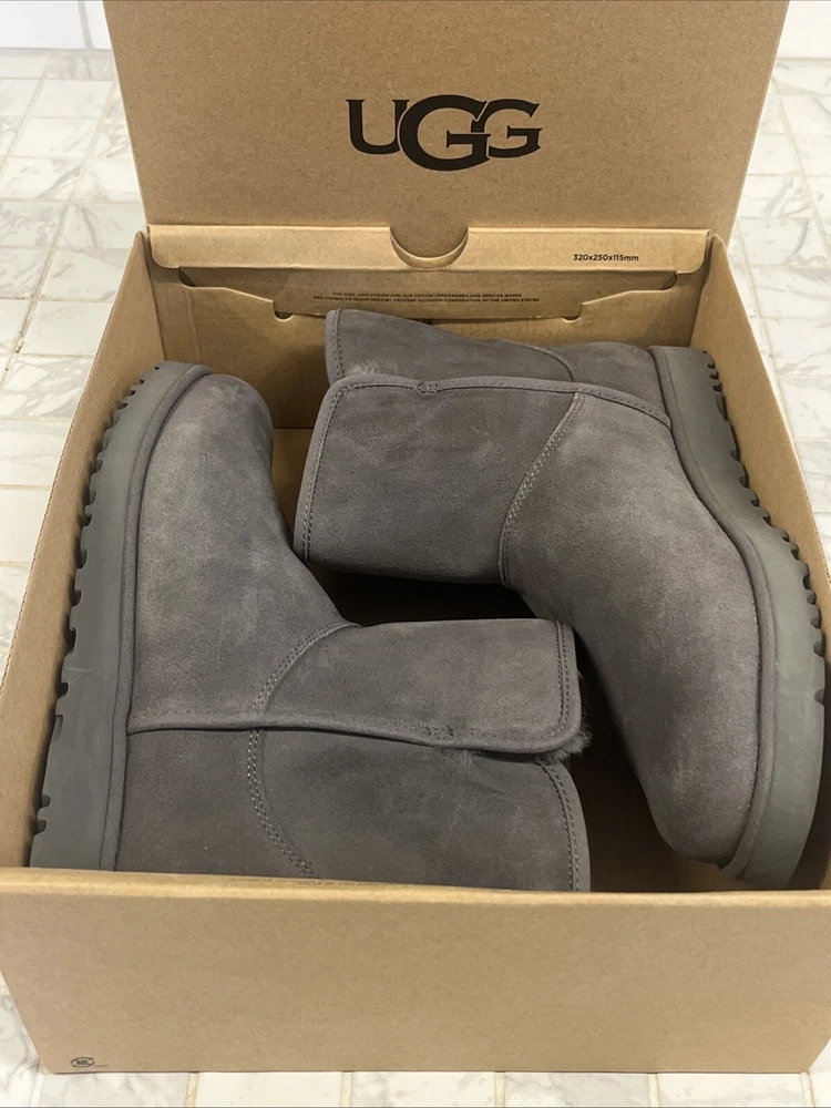 Introducing a brand new UGG Cory II 1125792 women's slim boots in charcoal, guaranteed authentic. These stylish boots are perfect for casual wear and feature a pull-on closure for convenience. The boots are designed with twinface sheepskin and suede upper material, and lined with sheepskin for added comfort. The Treadlite by UGG outsole material ensures durability and support. These boots come in a UK shoe size 7.5 and US shoe size 9.5 with a standard shoe width. The UGGPLUSH/Wool insole and added arch support provide extra cushioning for all-day wear. The UGG Cory II is a great addition to any wardrobe and is versatile enough to match any outfit. Trusted Ebay seller fast shipping. (100% Authentic brand new with box. See photos to judge condition Loc: 2.9