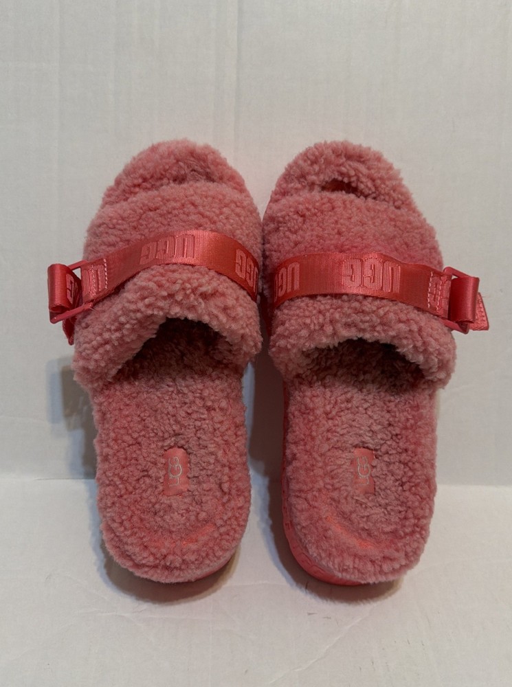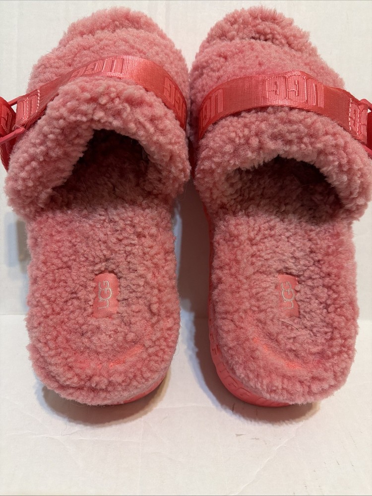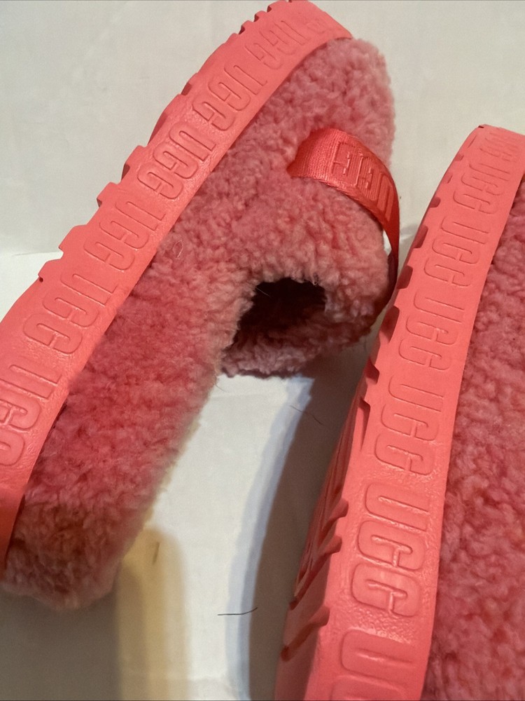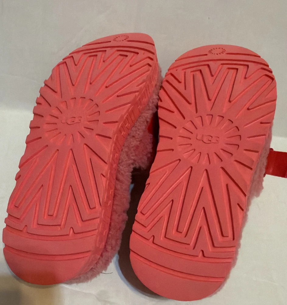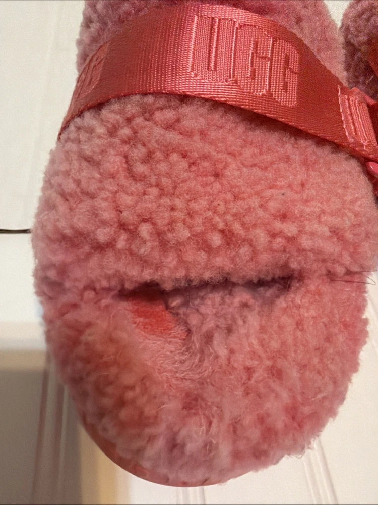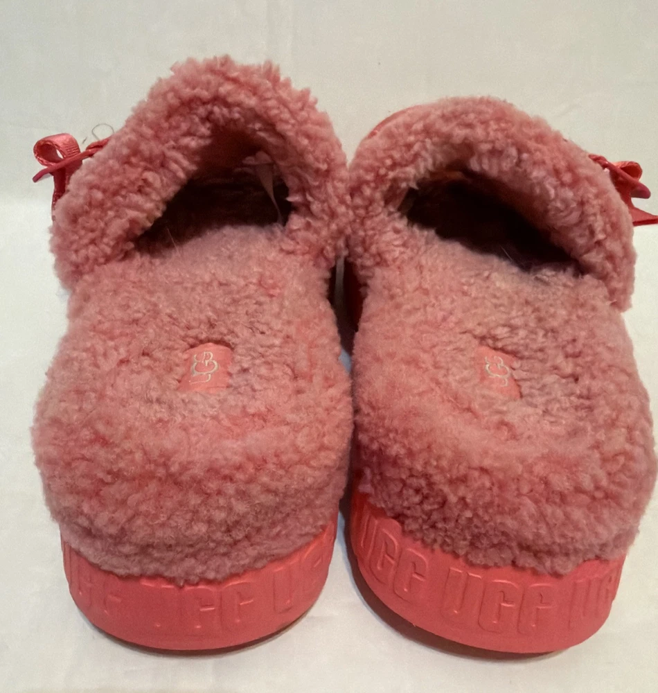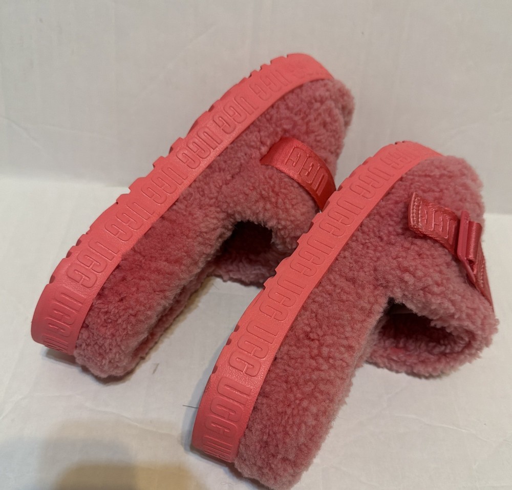 UGG Fluffita Sheepskin Platform Slide Slipper Hot PINK Logo 1113475 Womens Sz 10